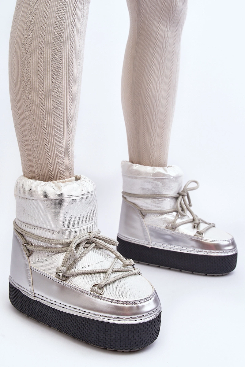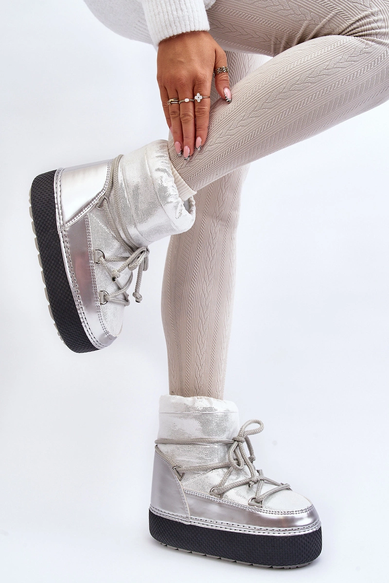 Damskie Śniegowce Z Wiązaniem Srebrne Toolsa