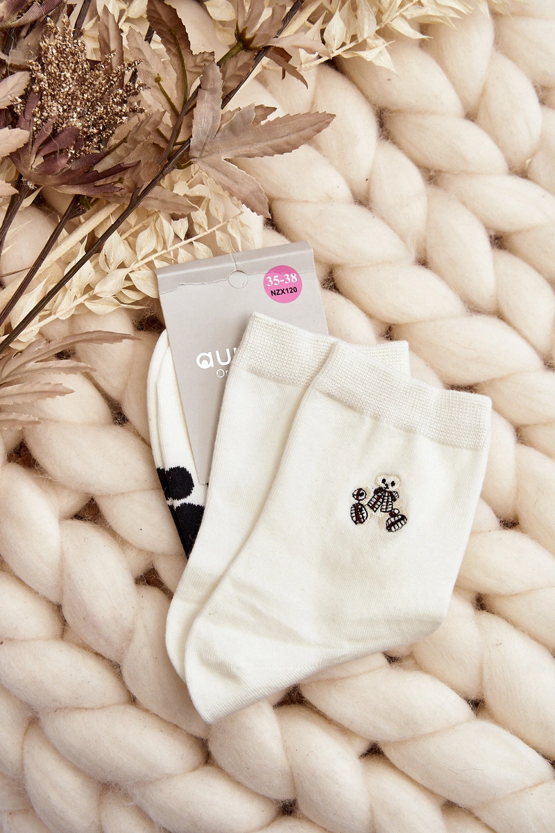 Bawełniane Skarpety Damskie Z Naszywką Miś Białe