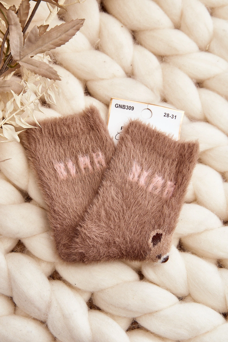 Futrzane Skarpety Dziecięce Z Misiami Brązowe
