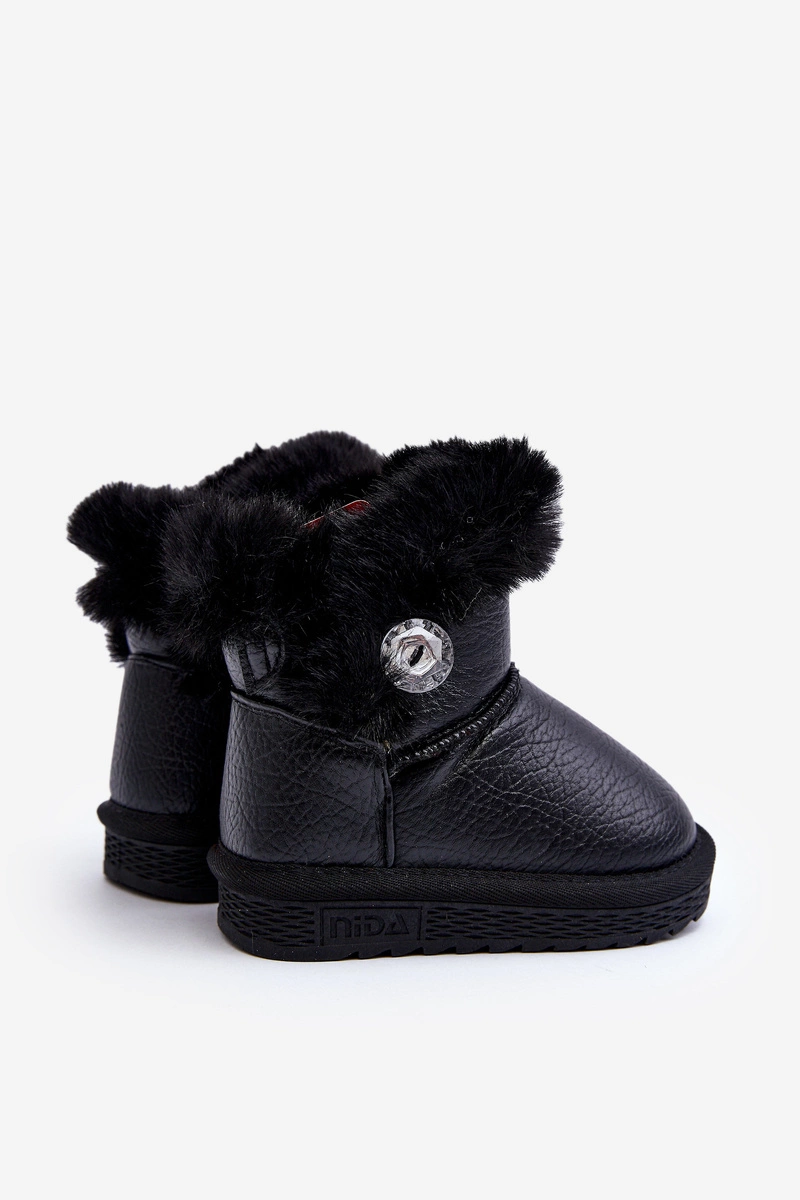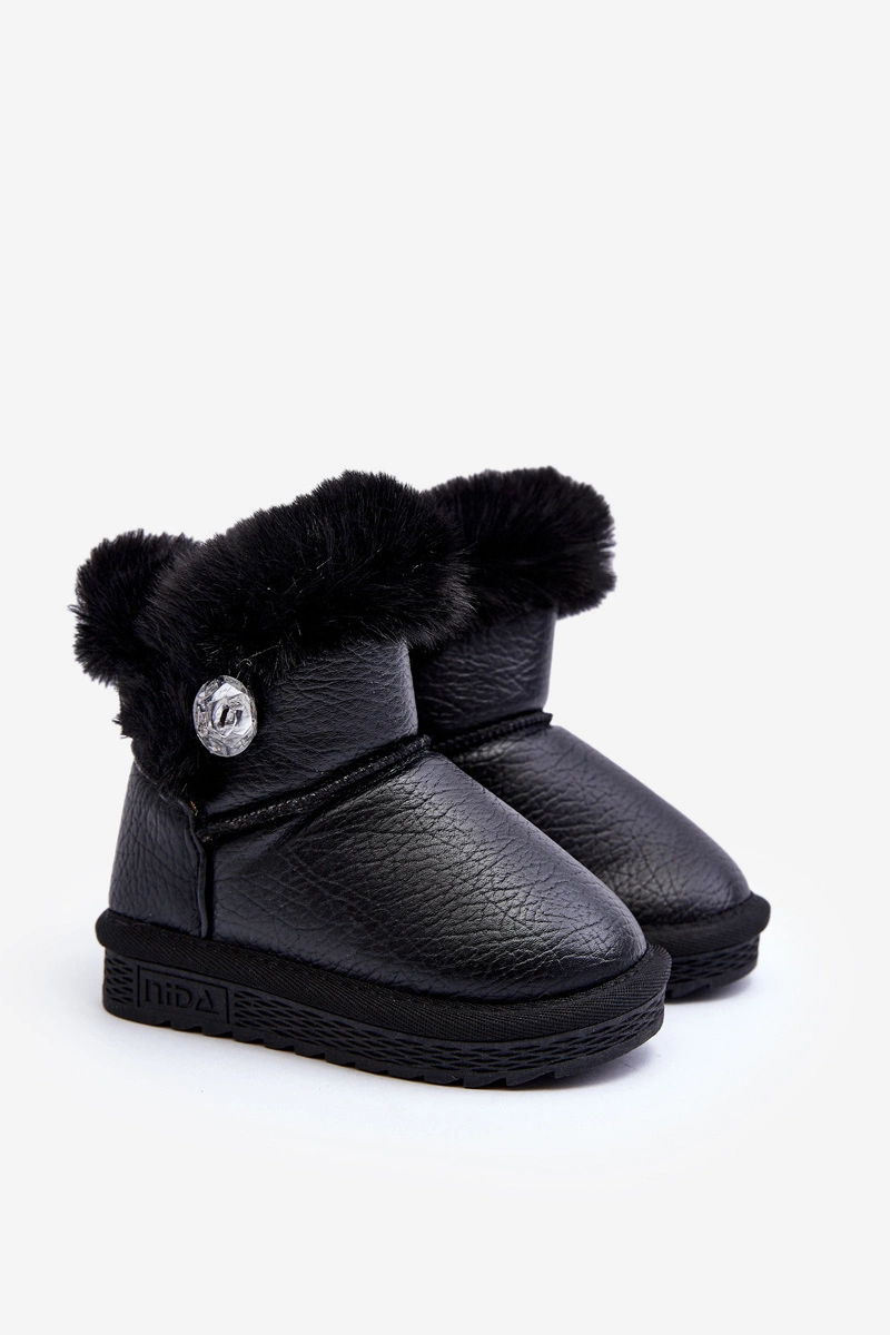 Ocieplane Botki Śniegowce Z Futerkiem Czarne Bessie
