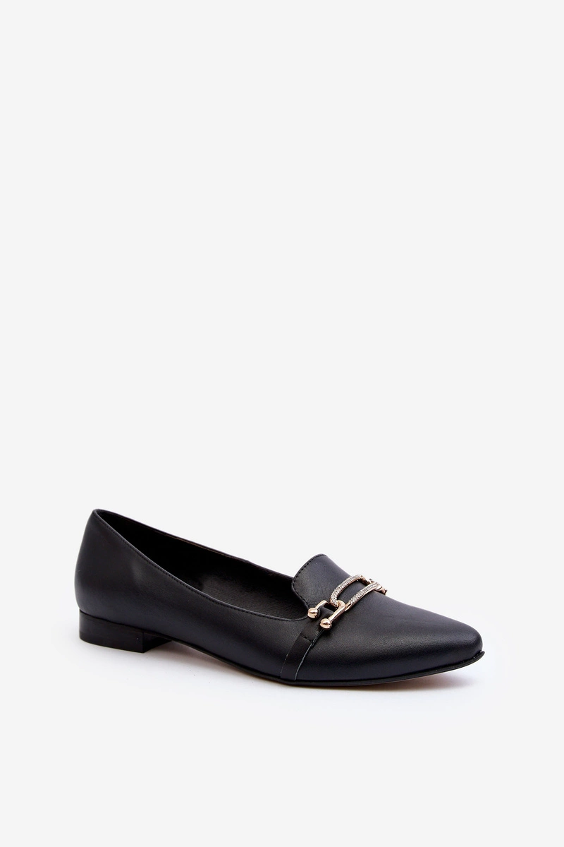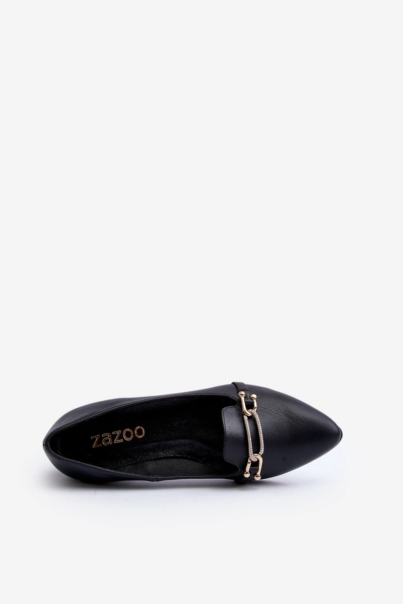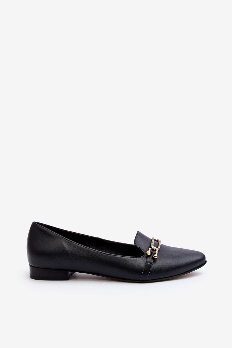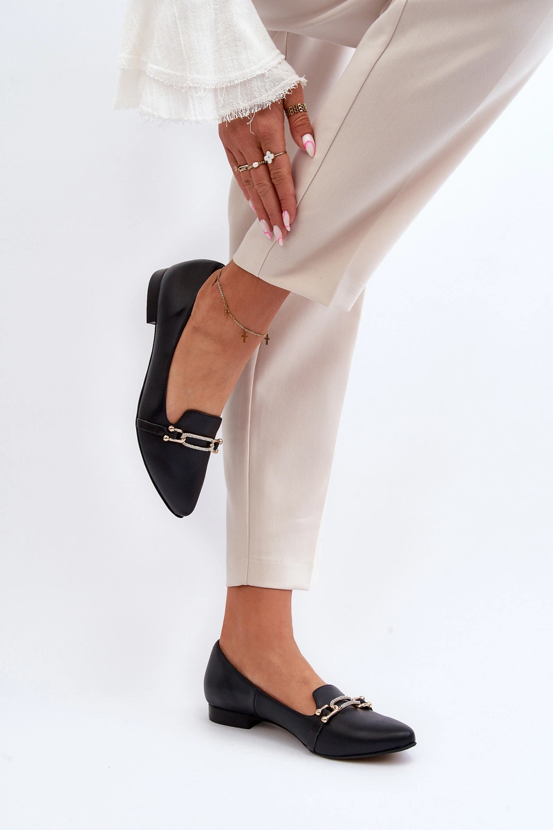 Zazoo 2885 Skórzane Baleriny Z Ozdobą Czarne