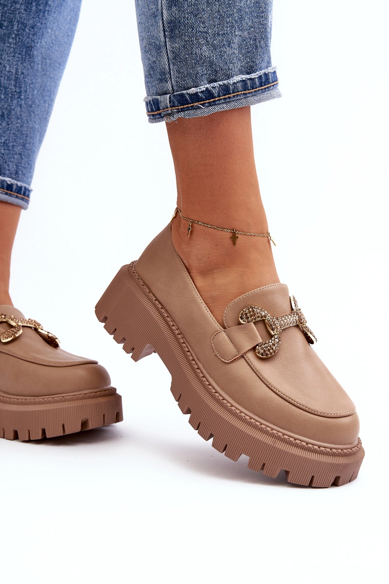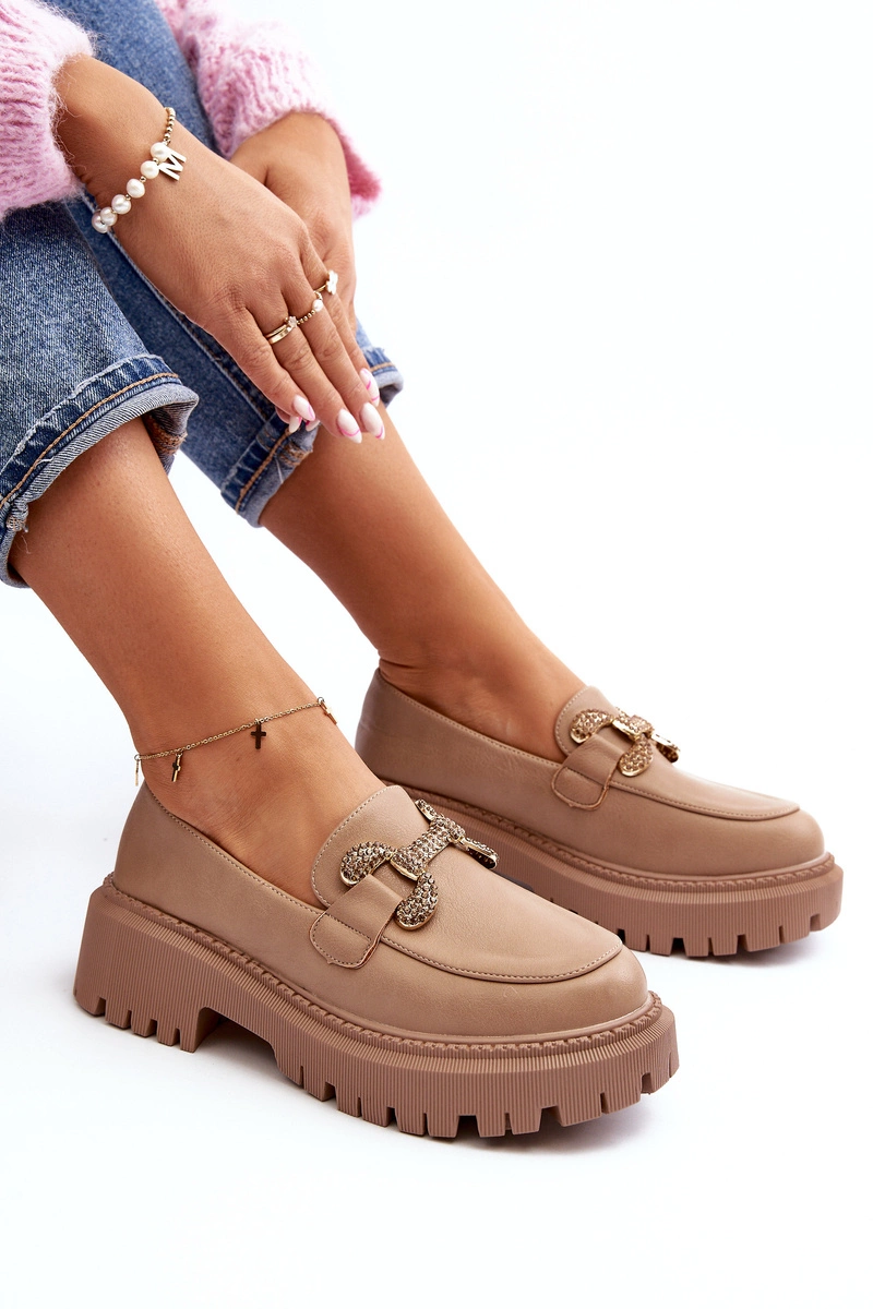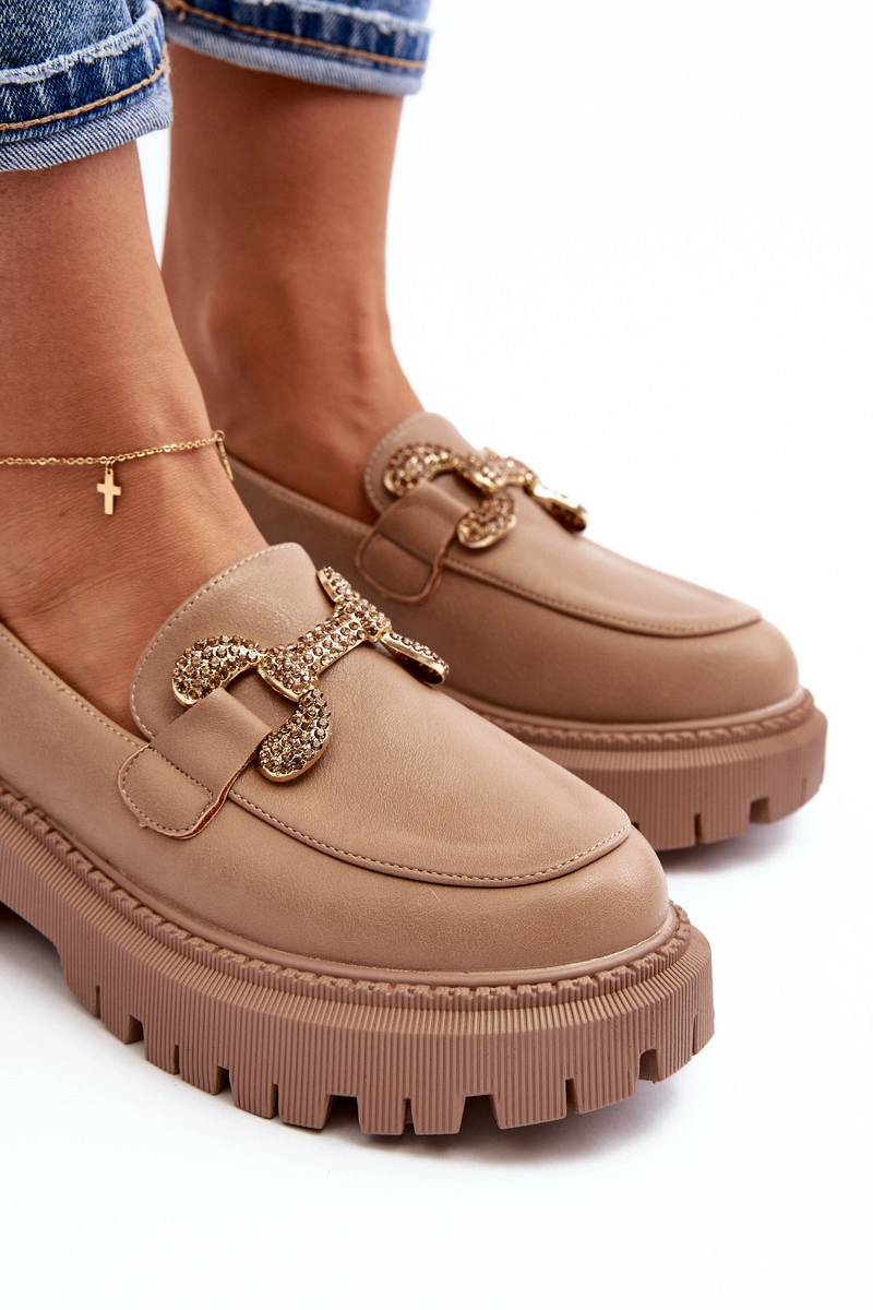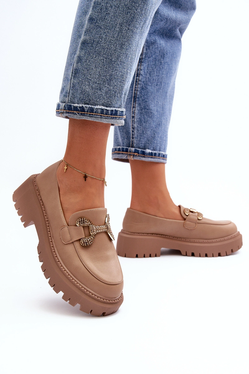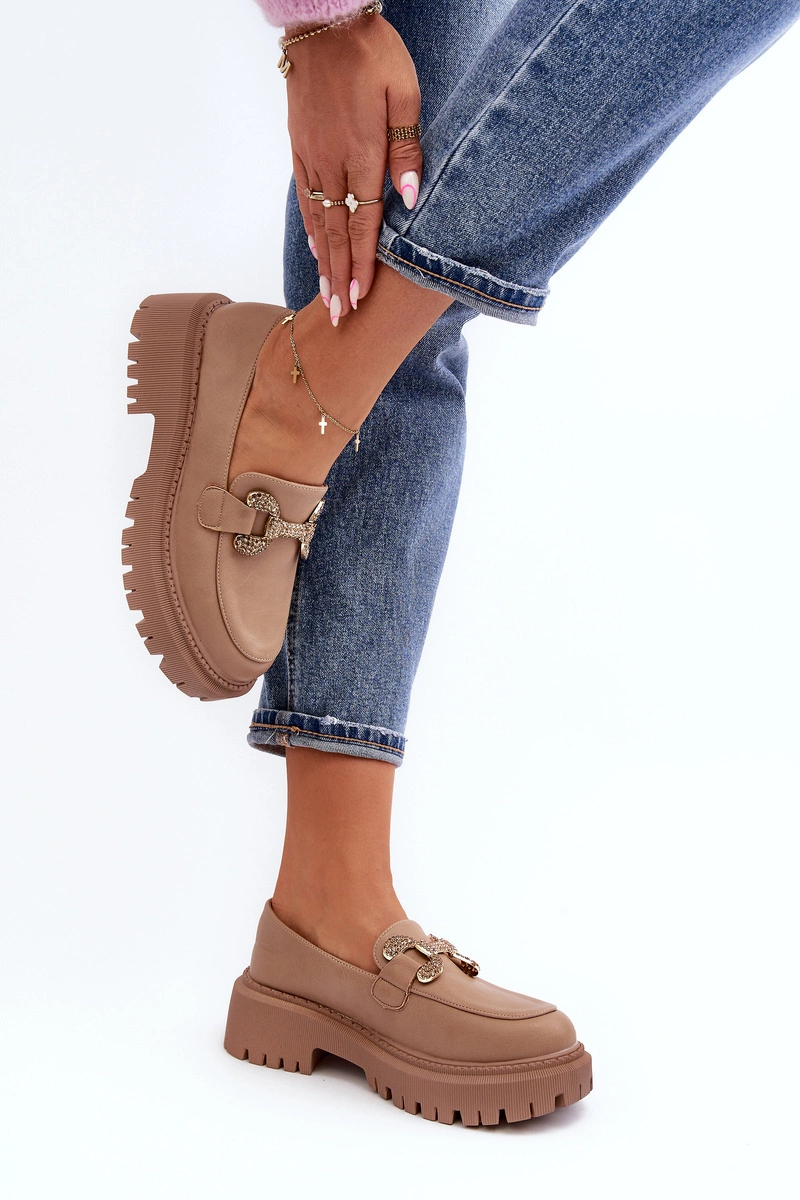 Mokasyny Damskie Z Ozdobą Ciemnobeżowe Gargi