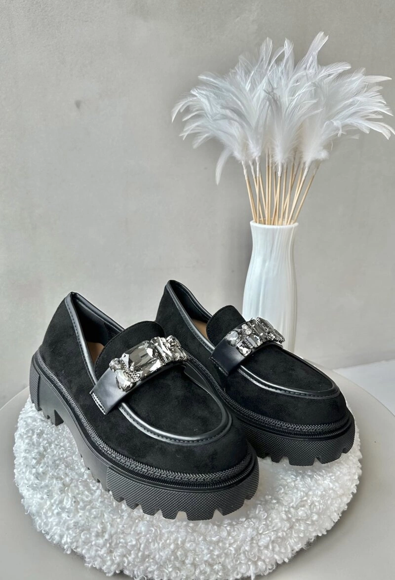 Mokasyny damskie wykonane z eko zamszu prezentują się wyjątkowo. Ozdoba oraz paseczek na przodzie dodają im subtelności i elegancji. Masywna platforma i płaski obcas sprawiają, że są niezwykle wygodne. To idealny model na wiosenno-jesienne dni, który doskonale uzupełni różnorodne stylizacje. Koniecznie dodaj te modne mokasyny do swojej kolekcji, aby podkreślić swój wyjątkowy styl! Przy wyborze rozmiaru prosimy sugerować się tabelą rozmiarów.