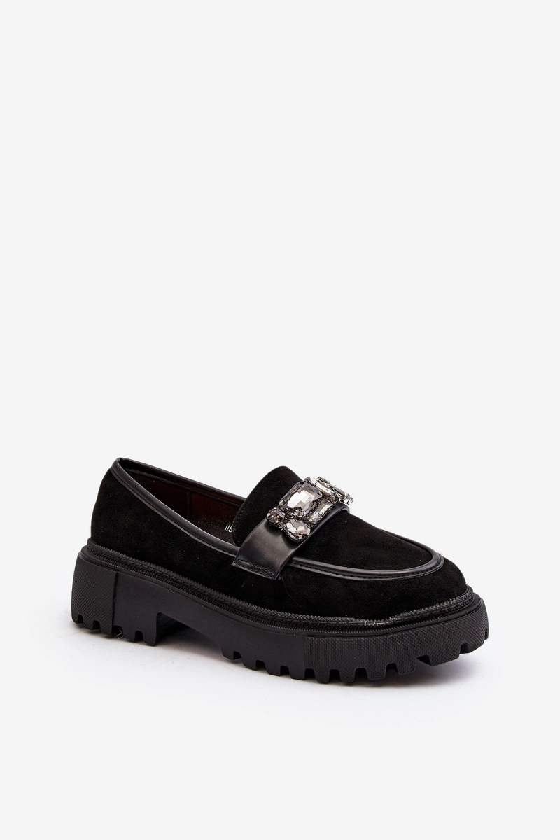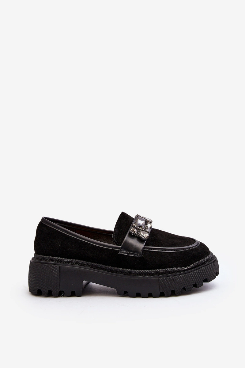 Mokasyny Damskie Z Ozdobnym Paskiem Czarne Nancille