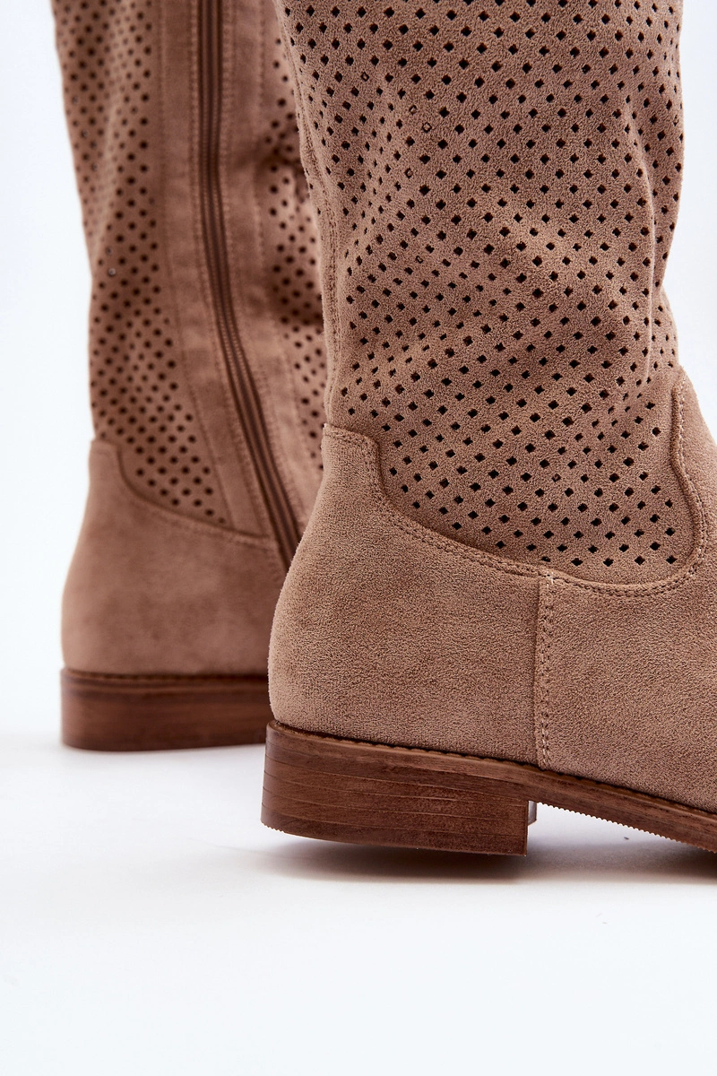 S.Barski HY66-139 Ażurowe Kozaki Damskie Beżowe