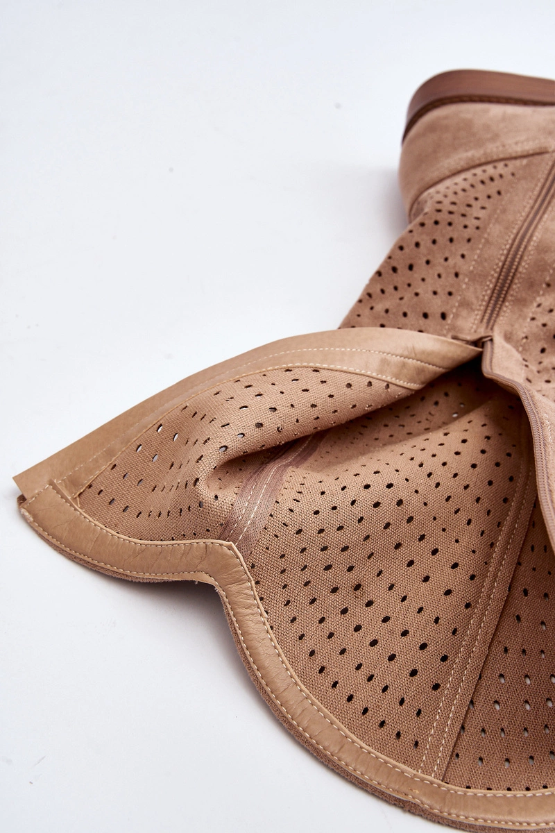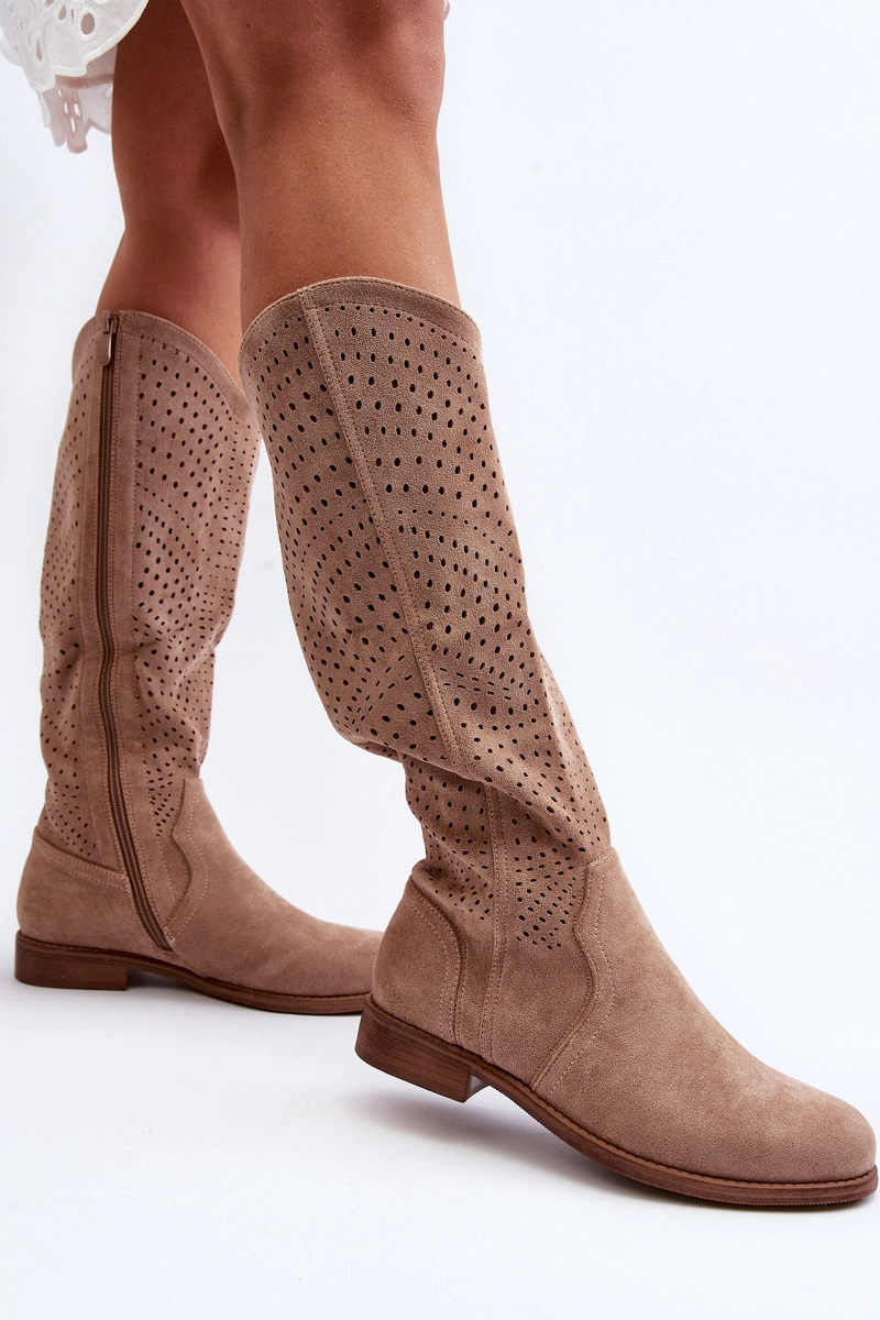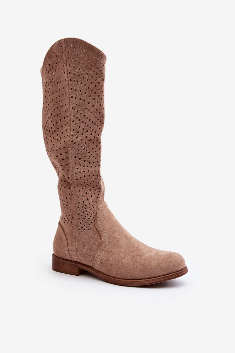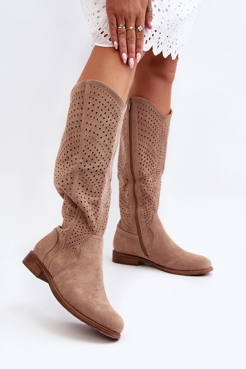 S.Barski HY66-150 Ażurowe Kozaki Na Płaskim Obcasie Beżowe