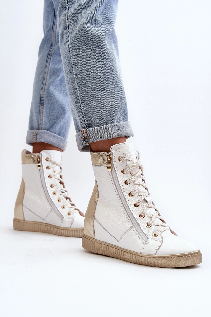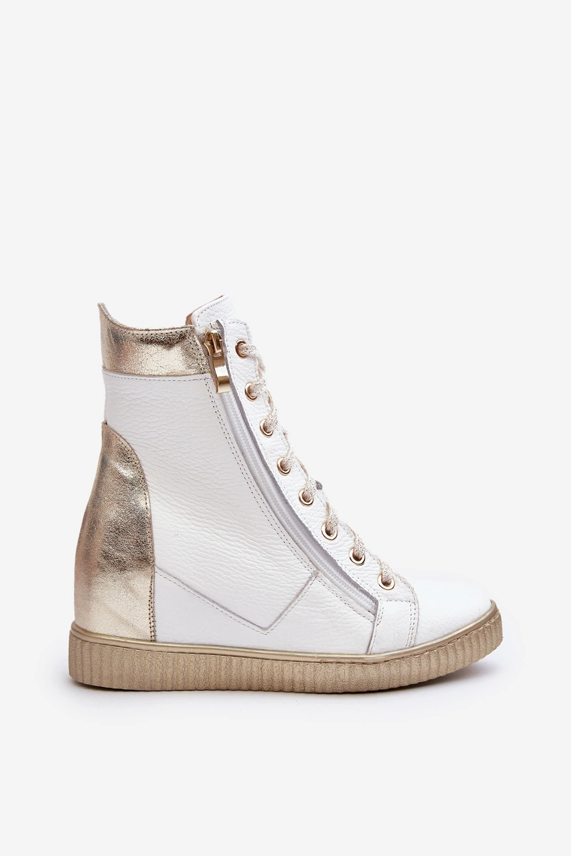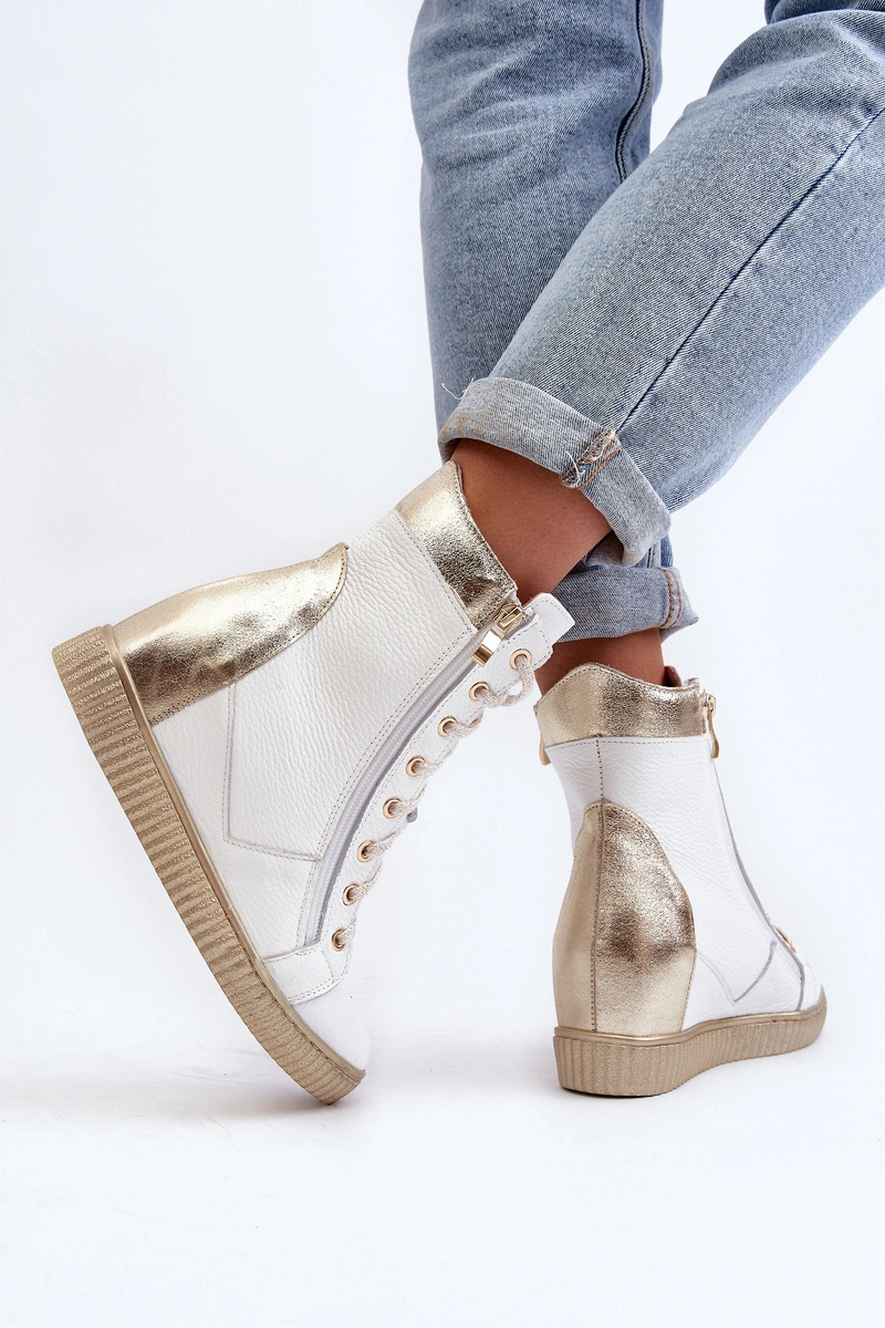 Zazoo 3081 Skórzane Trampki Damskie Na Koturnie Białe