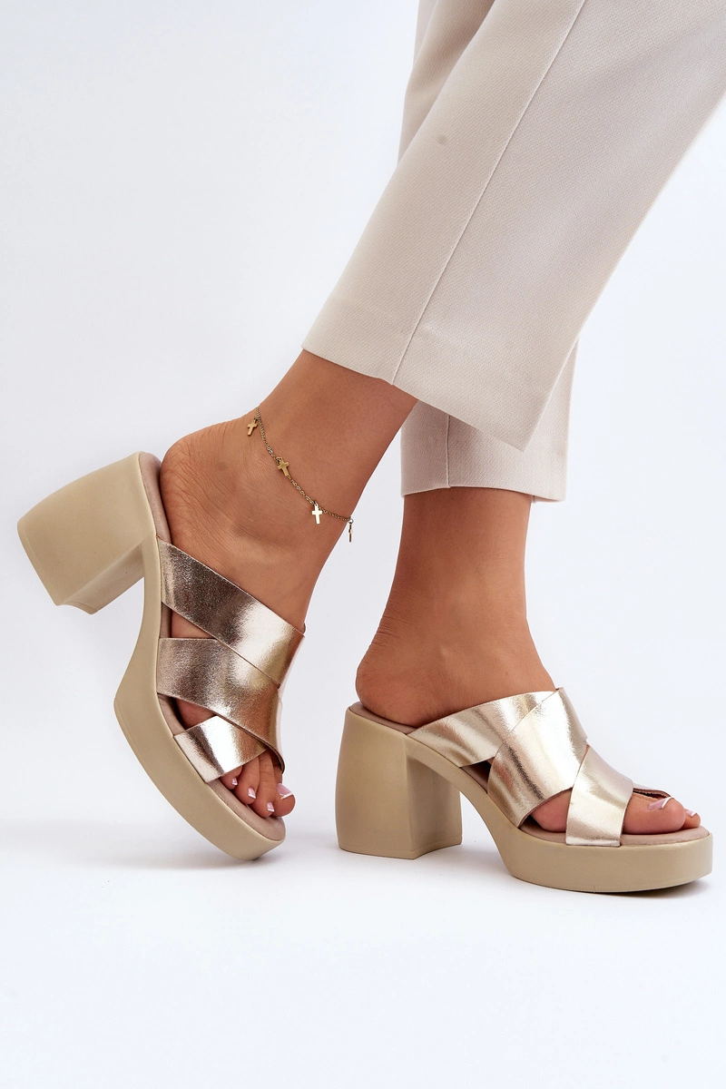 Zazoo 40373 Skórzane Klapki Na Klocku Złote