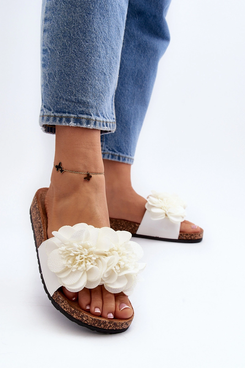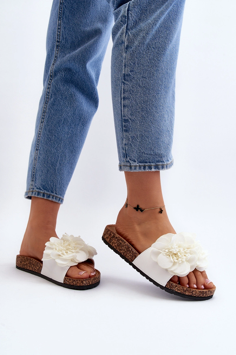 Piękne klapki damskie ozdobione kwiatami. Osadzone na korkowej platformie. Buty posiadają lekko profilowaną wkładkę, która zagwarantuje komfort podczas użytkowania. Fason ten idealnie sprawdzi się na co dzień, do pracy czy na zakupy. Koniecznie powinnaś je mieć w swojej letniej garderobie! Przy wyborze rozmiaru prosimy sugerować się tabelą rozmiarów.