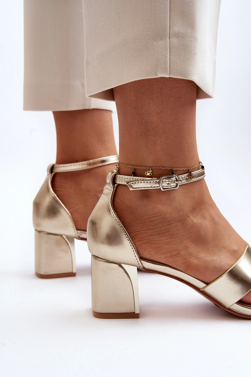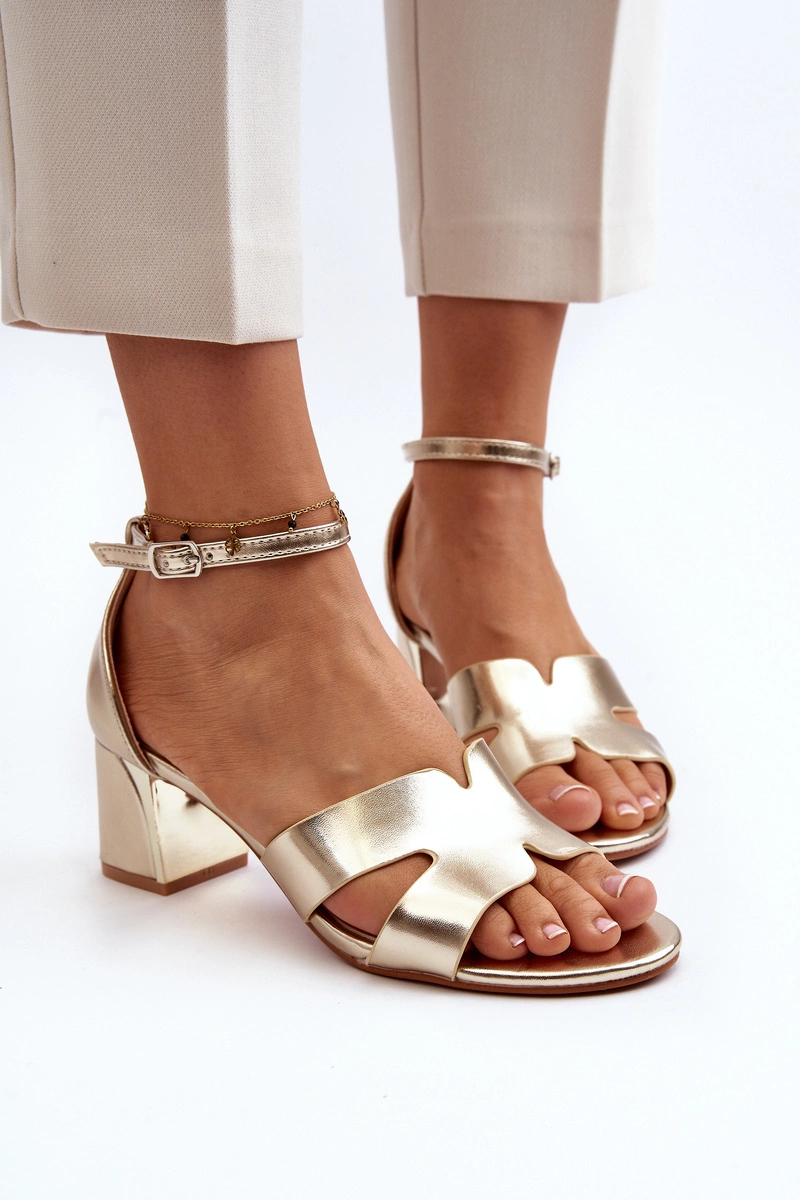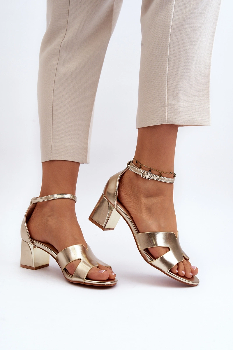 Sandały Damskie Na Obcasie Klocku Złote Irivana