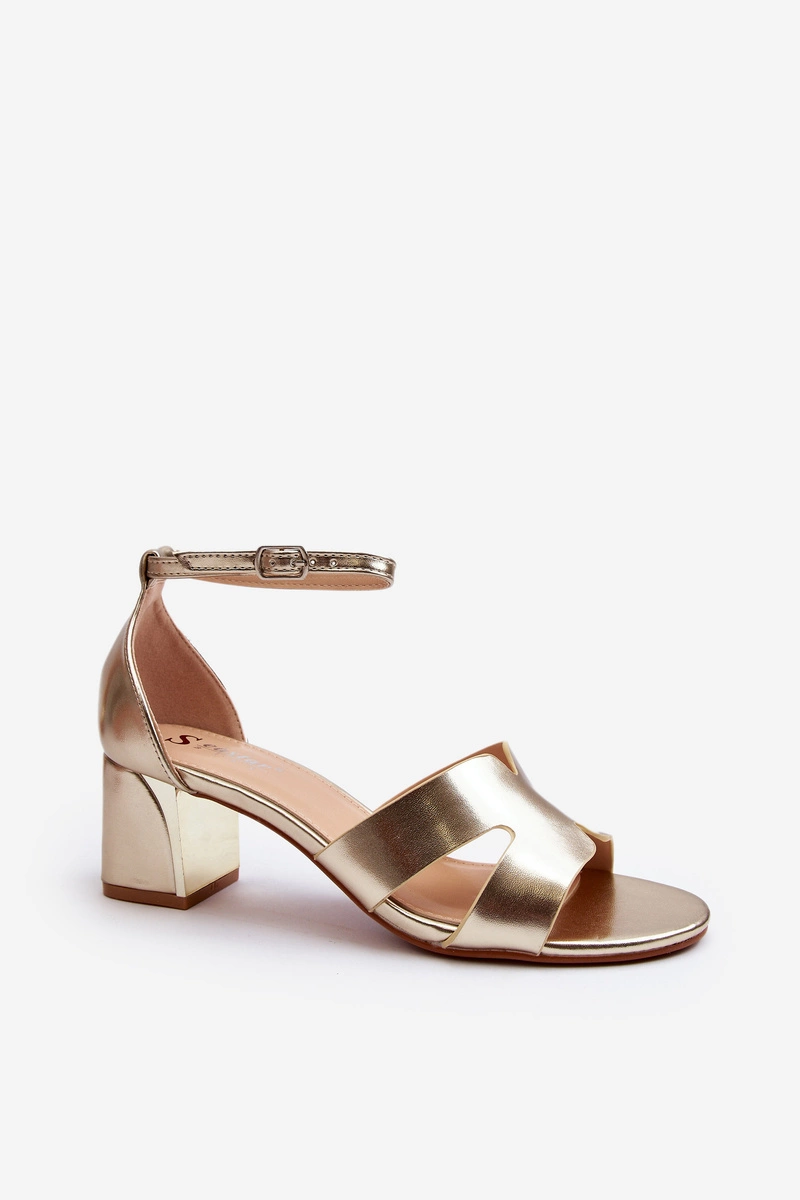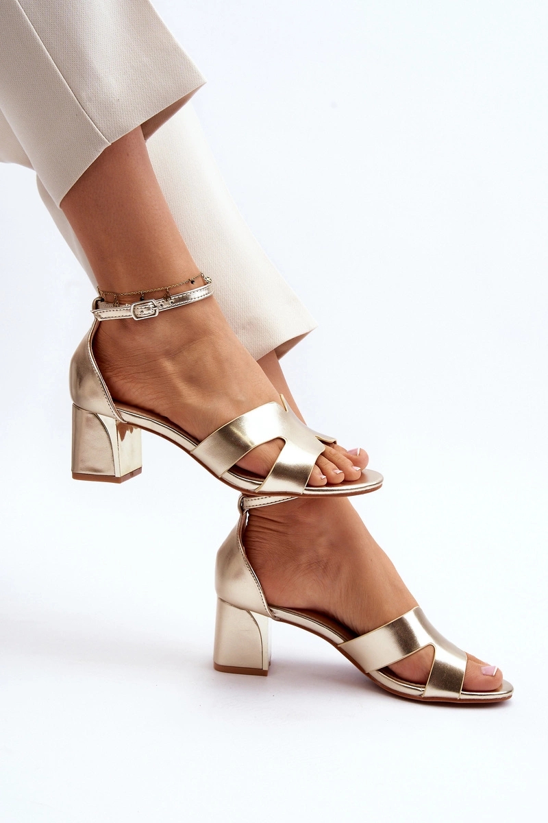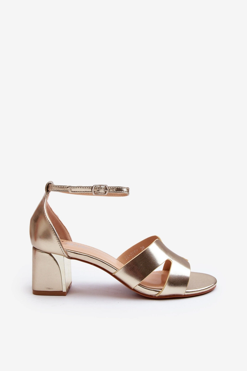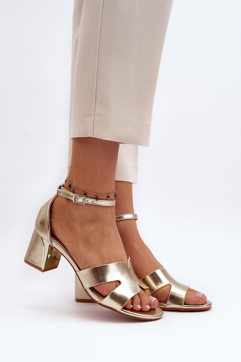 Sandały Damskie Na Obcasie Klocku Złote Irivana