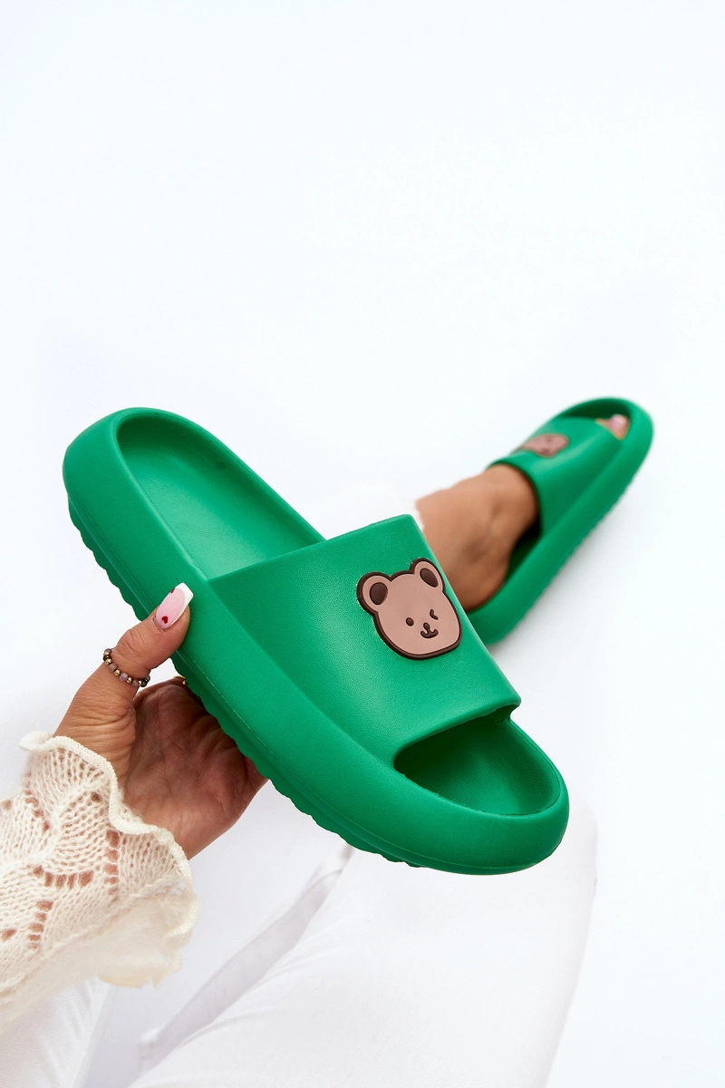 Lekkie Damskie Piankowe Klapki Z Misiem Zielone Lia