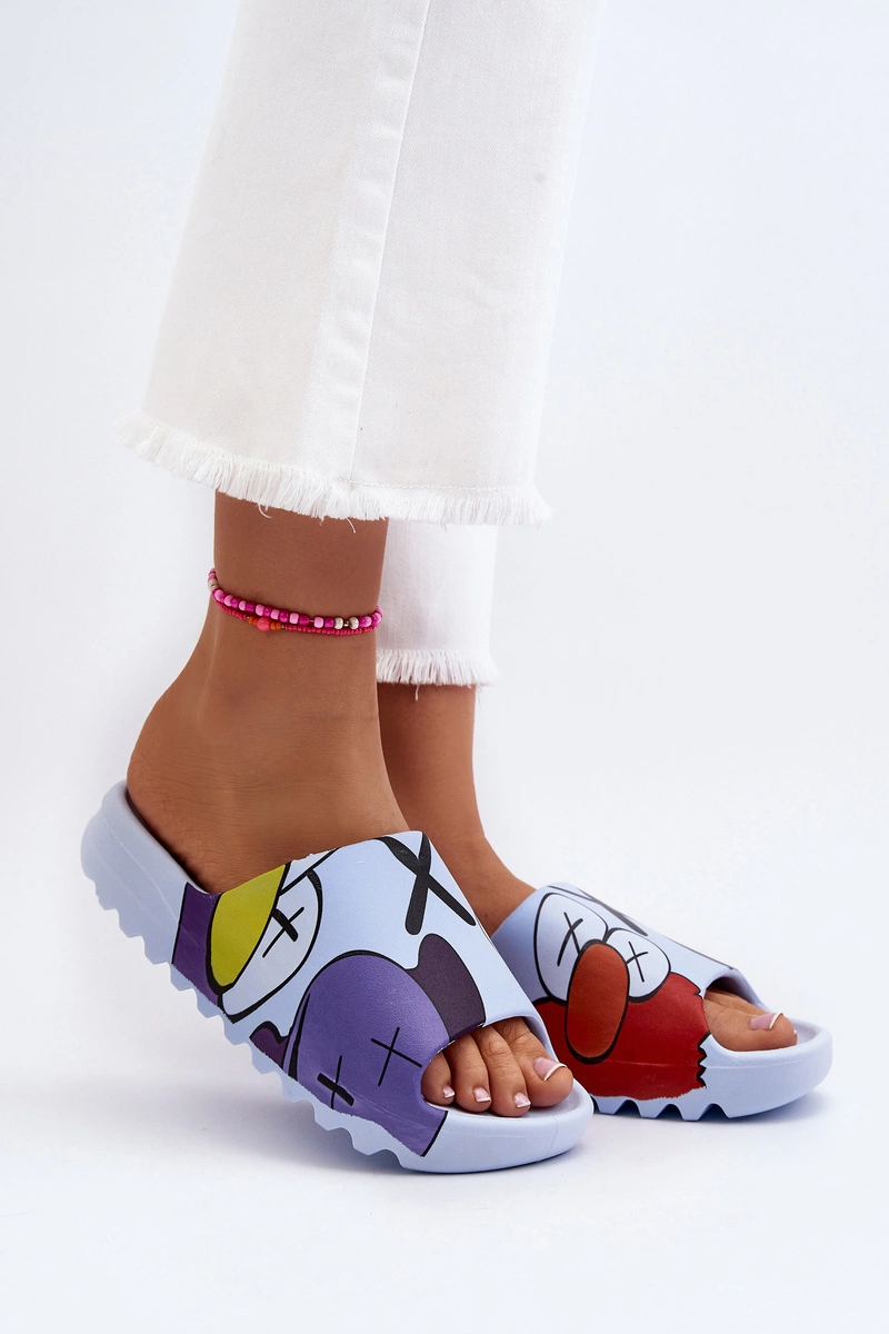 Gumowe Klapki Z Nadrukiem Niebieskie Monsters