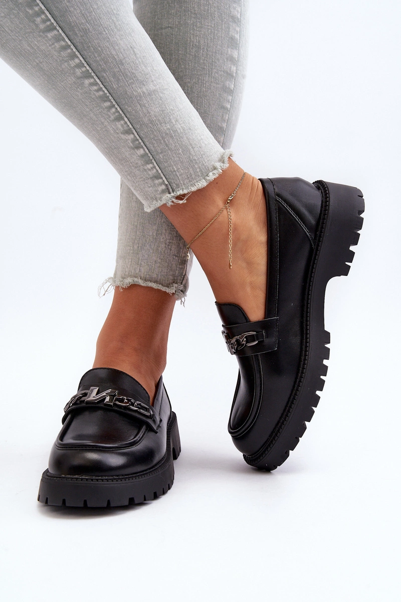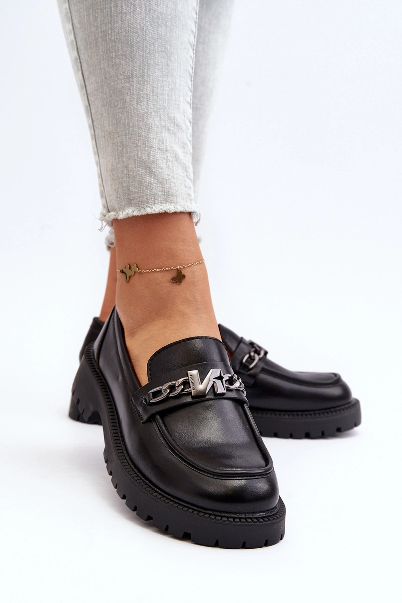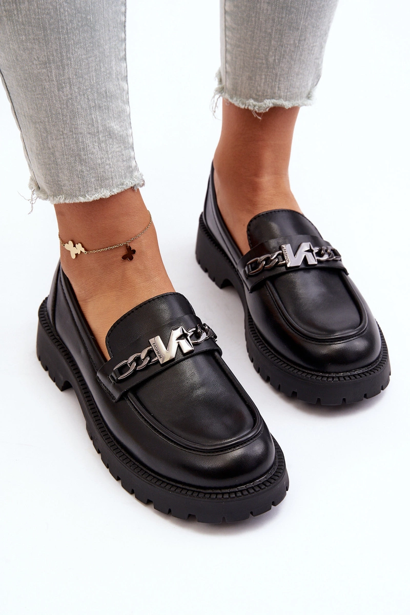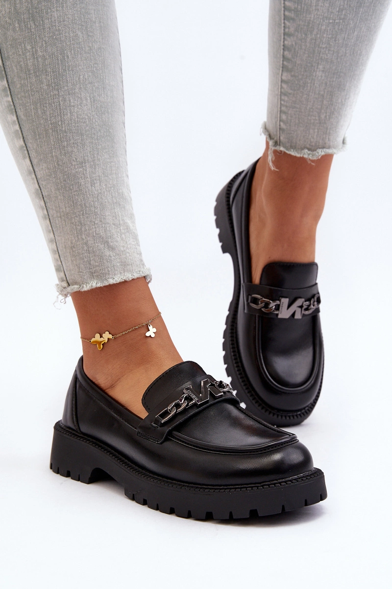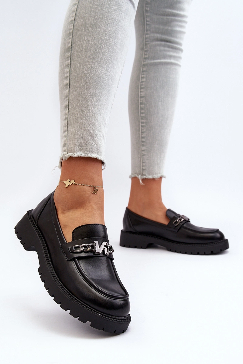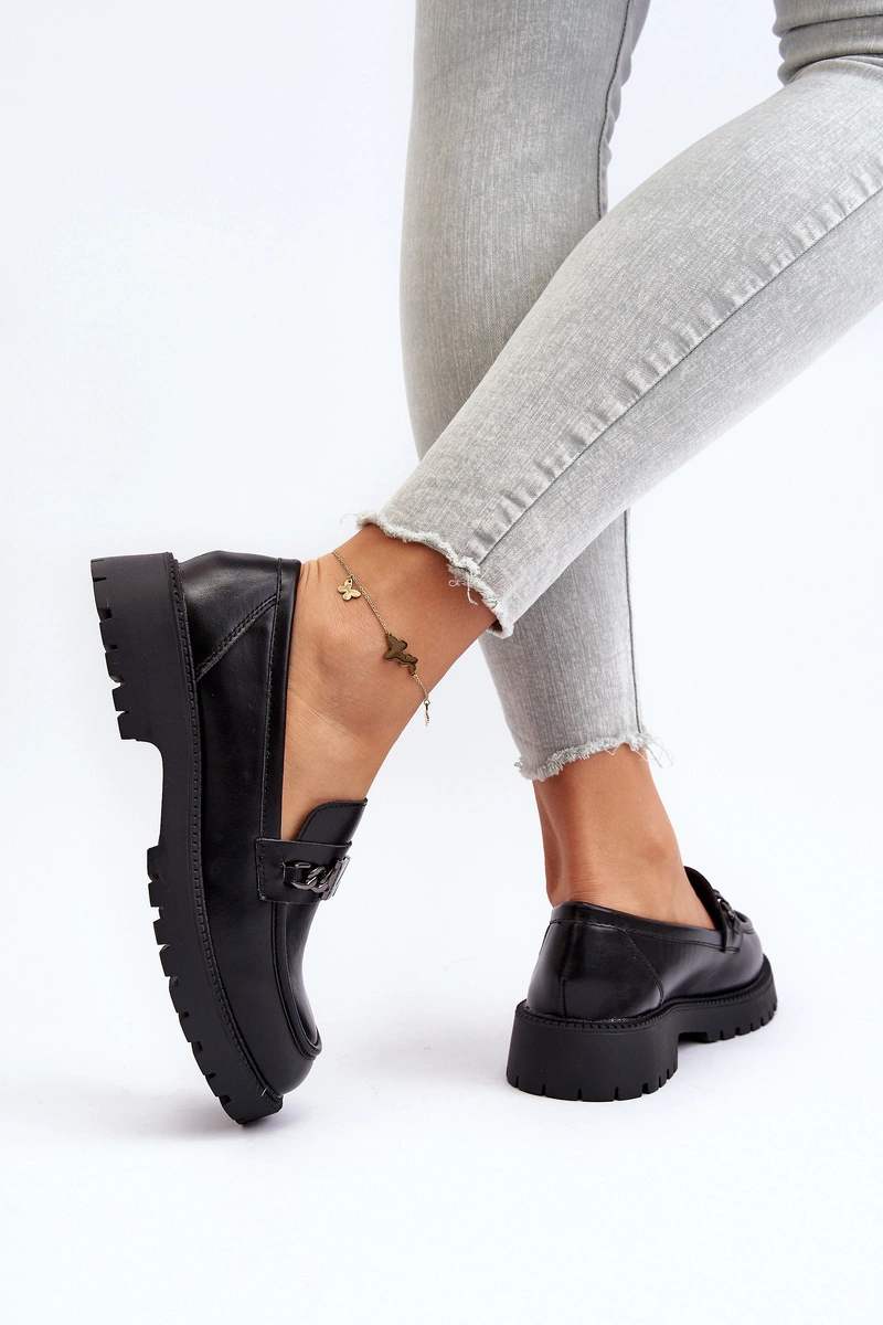 Mokasyny Damskie Na Płaskim Obcasie Czarne Ezoma