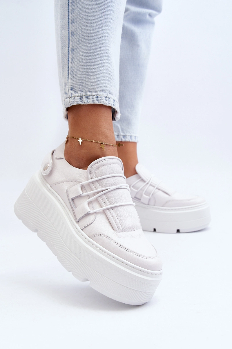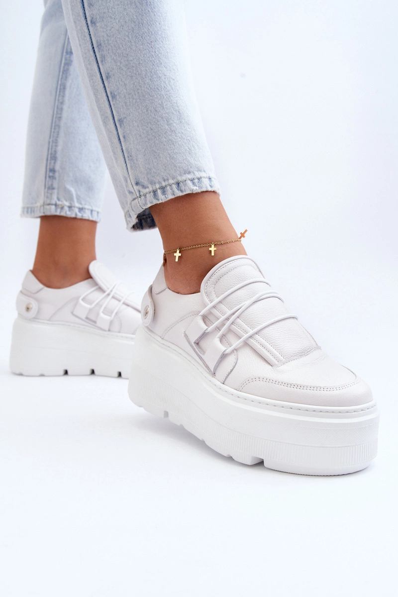 Zazoo 1833 Sneakersy Damskie Skórzane Na Masywnej Podeszwie Białe