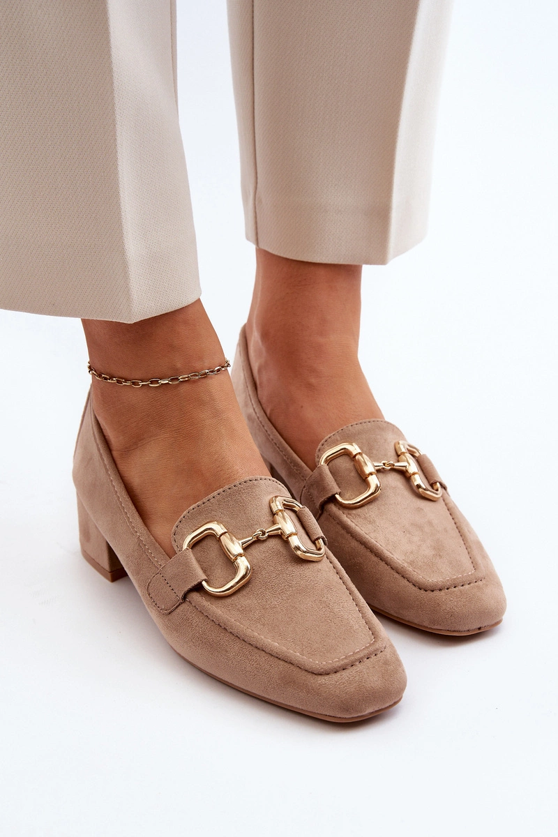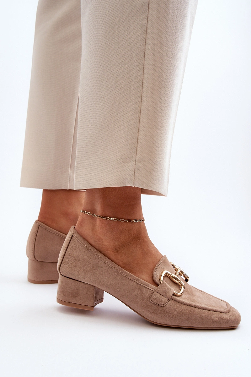 Czółenka Na Niskim Obcasie Klocku Z Ozdobą Beżowe Dolvira