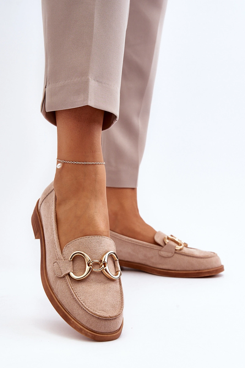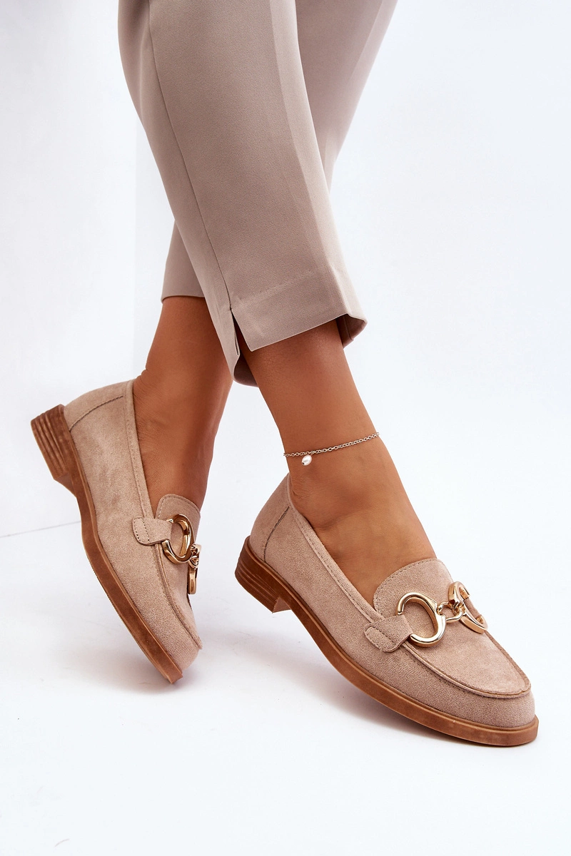Damskie Zamszowe Mokasyny Z Ozdobą Beżowe Echonesa