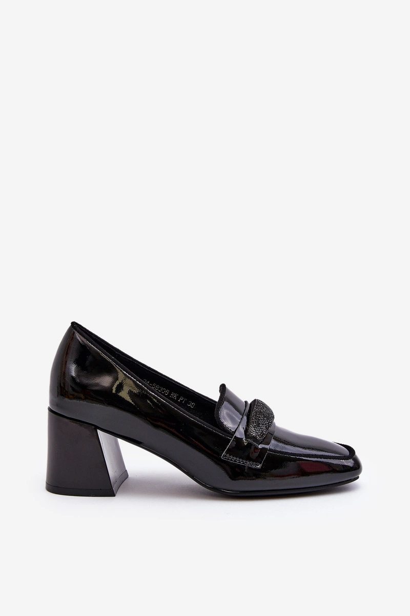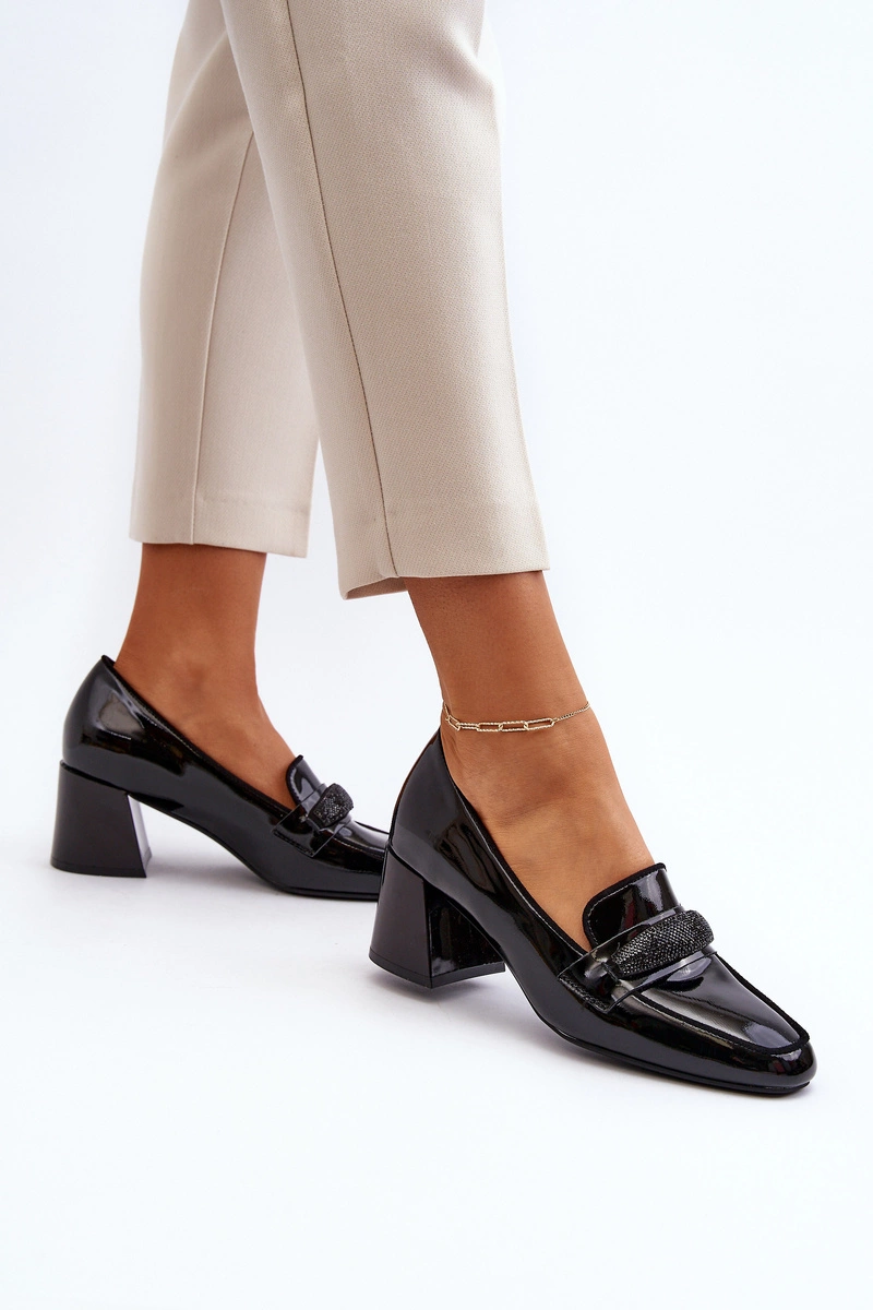 Czółenka Lakierowane Z Ozdobą Czarne Samassa