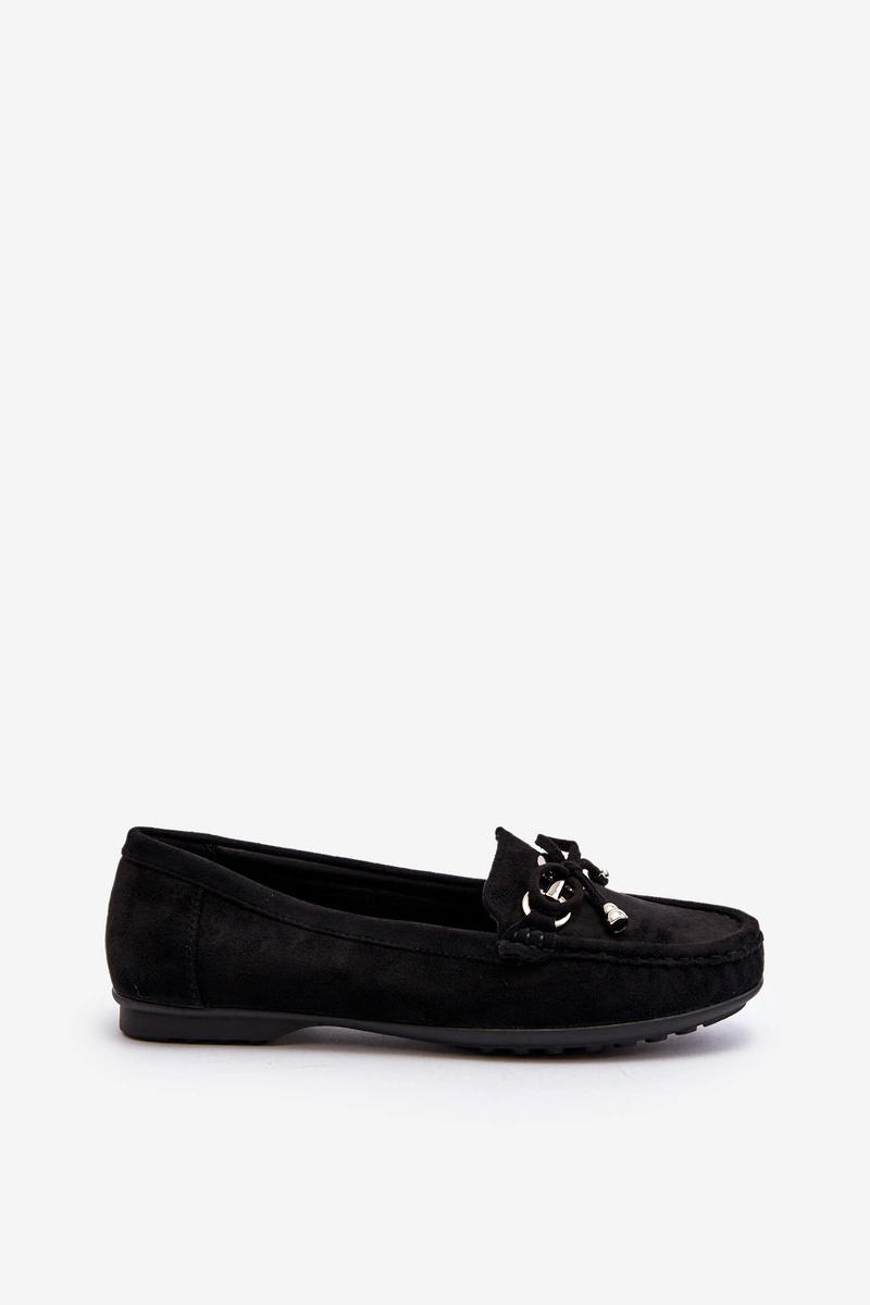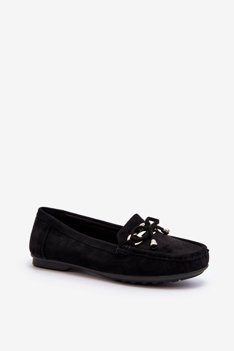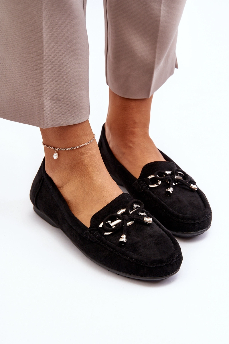 Zamszowe Mokasyny Damskie Ozdobą Czarne Daphikaia