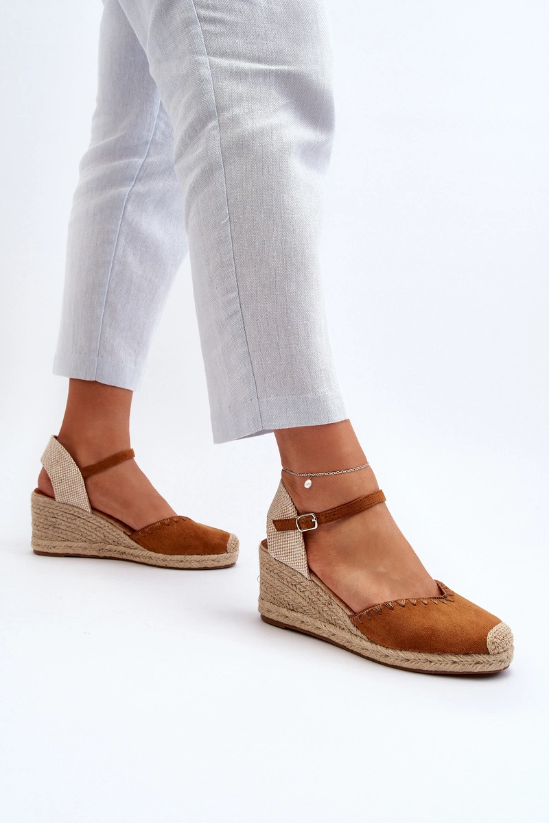 Zamszowe Sandały Espadryle Na Koturnie Z Plecionką Camel Raylin