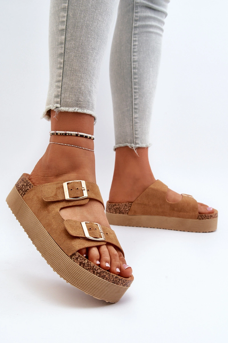 Damskie Klapki Na Platformie Z Klamrami Camel Lolpey