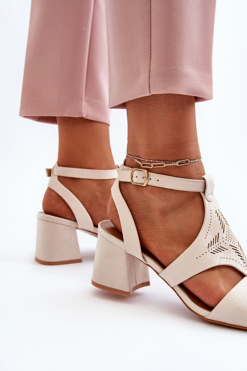 Sandały Na Niskim Obcasie Beżowe Eleriva