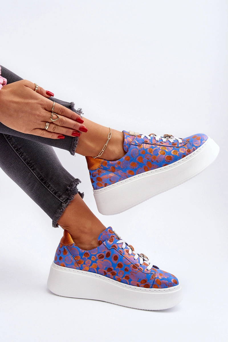 Skórzane Buty Sportowe Na Platformie Maciejka 06191-06 Niebieskie