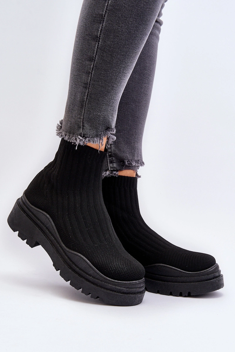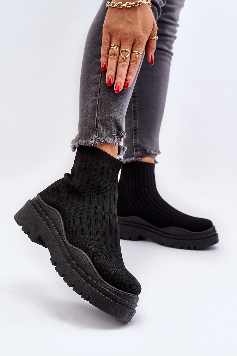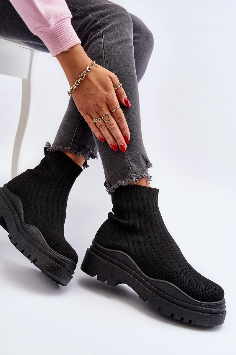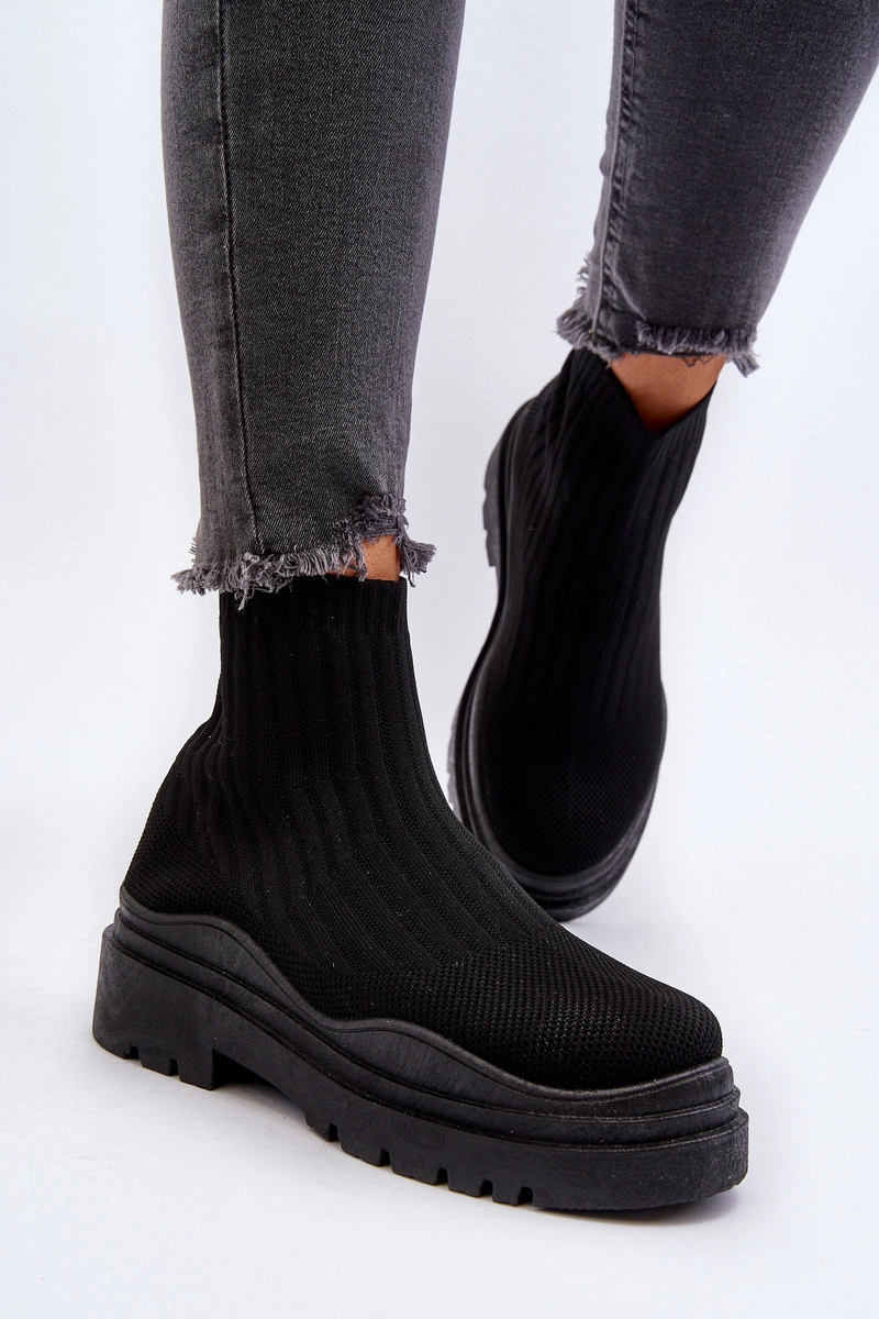 Skarpetkowe Botki Na Masywnej Podeszwie Wsuwane Damskie Czarne Elipara