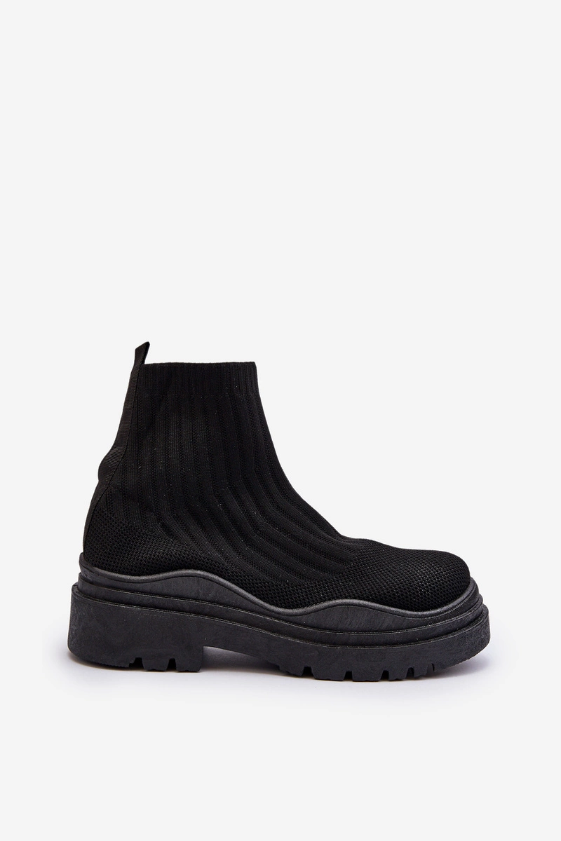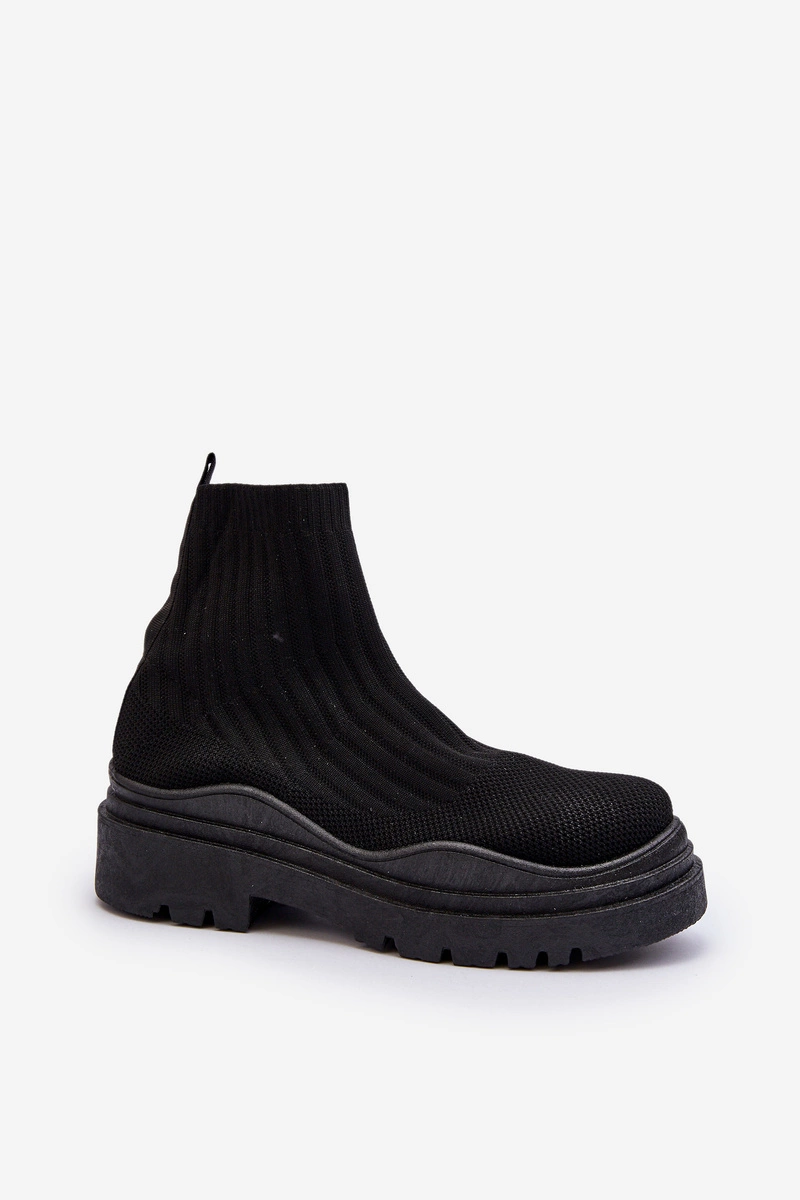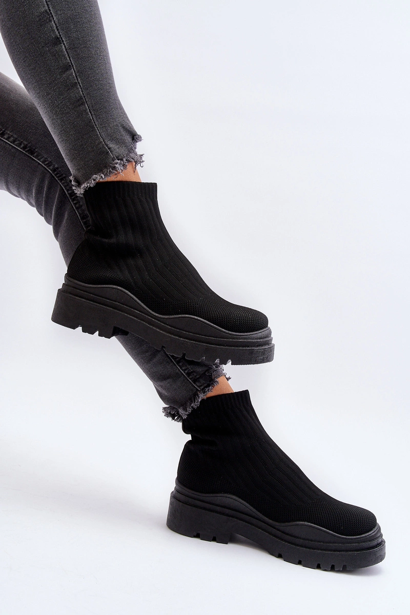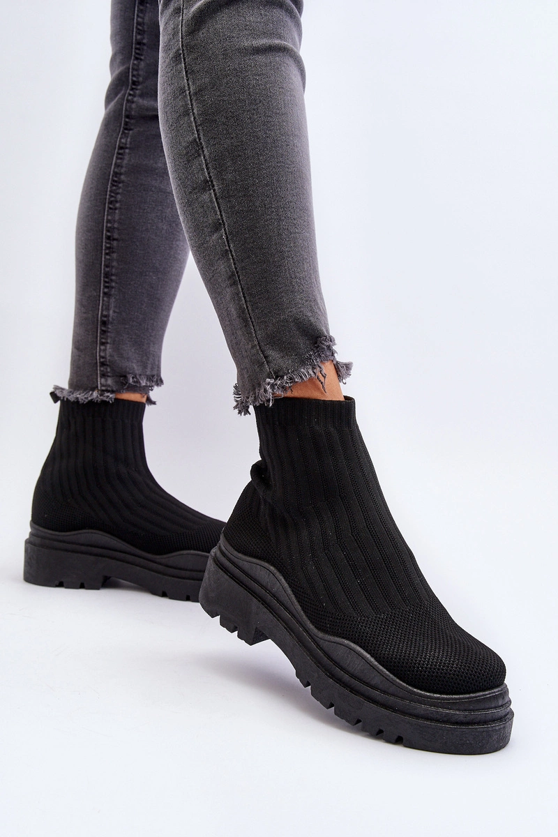 Skarpetkowe Botki Na Masywnej Podeszwie Wsuwane Damskie Czarne Elipara