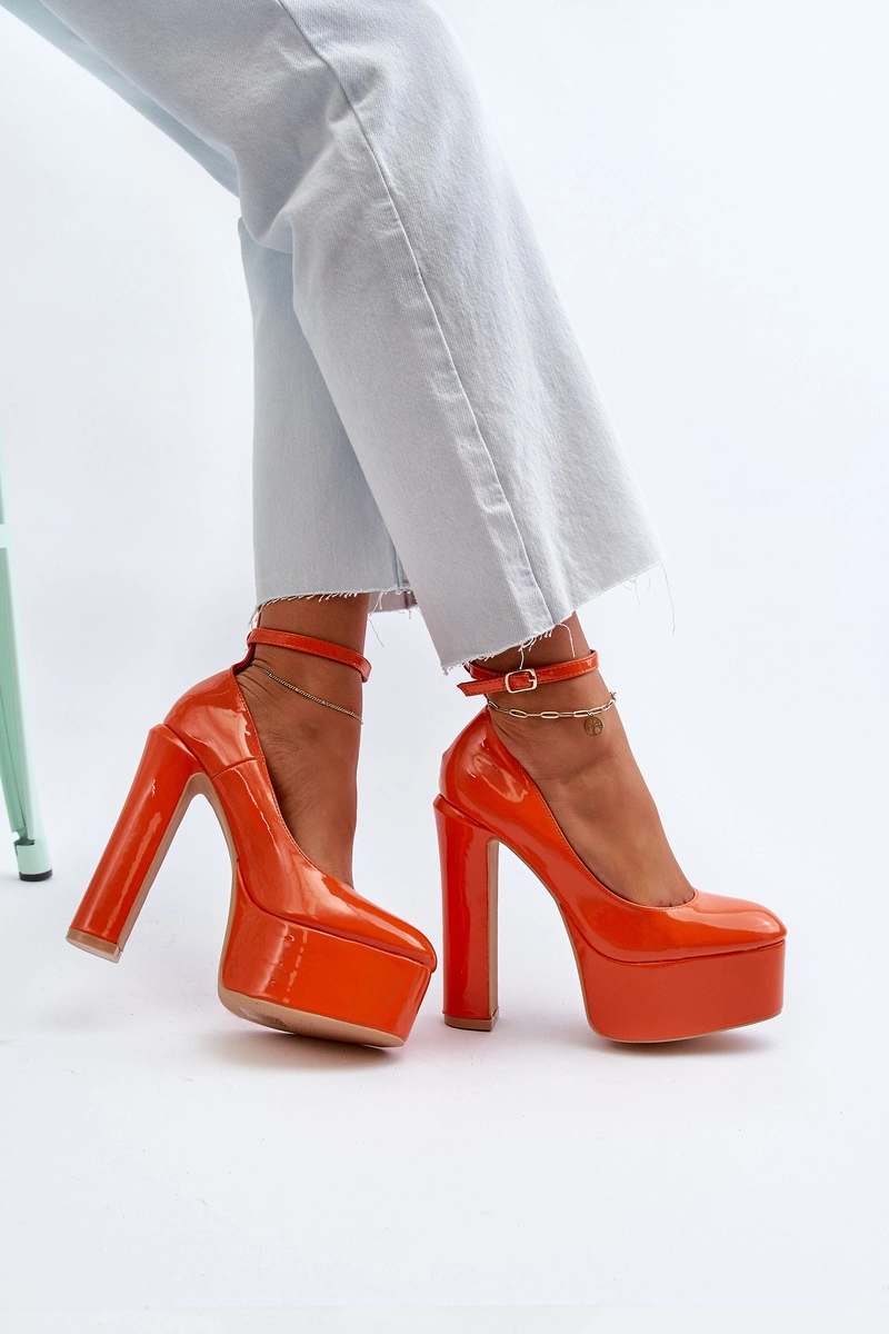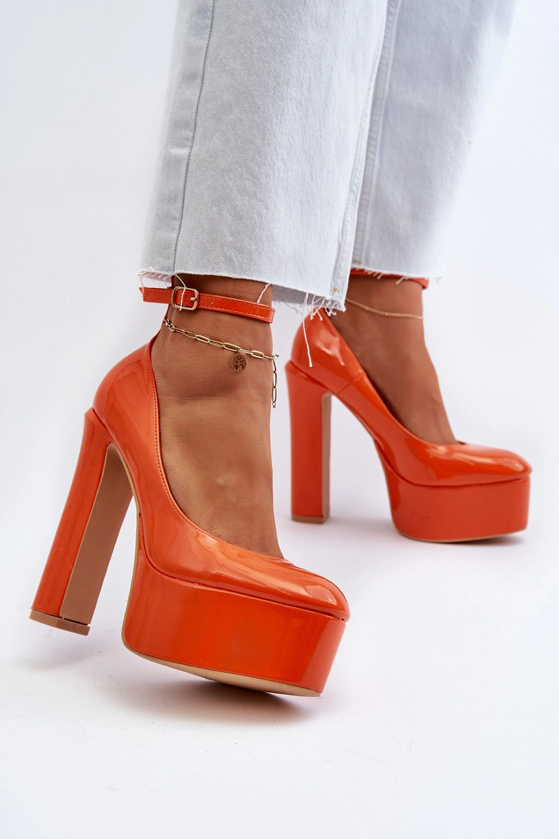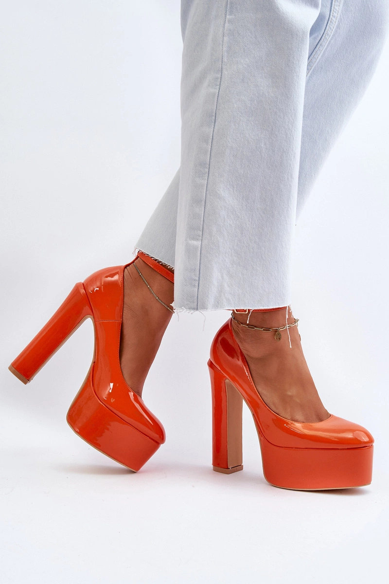 Lakierowane Czółenka Na Masywnej Platformie I Słupku Pomarańczowe Ninames