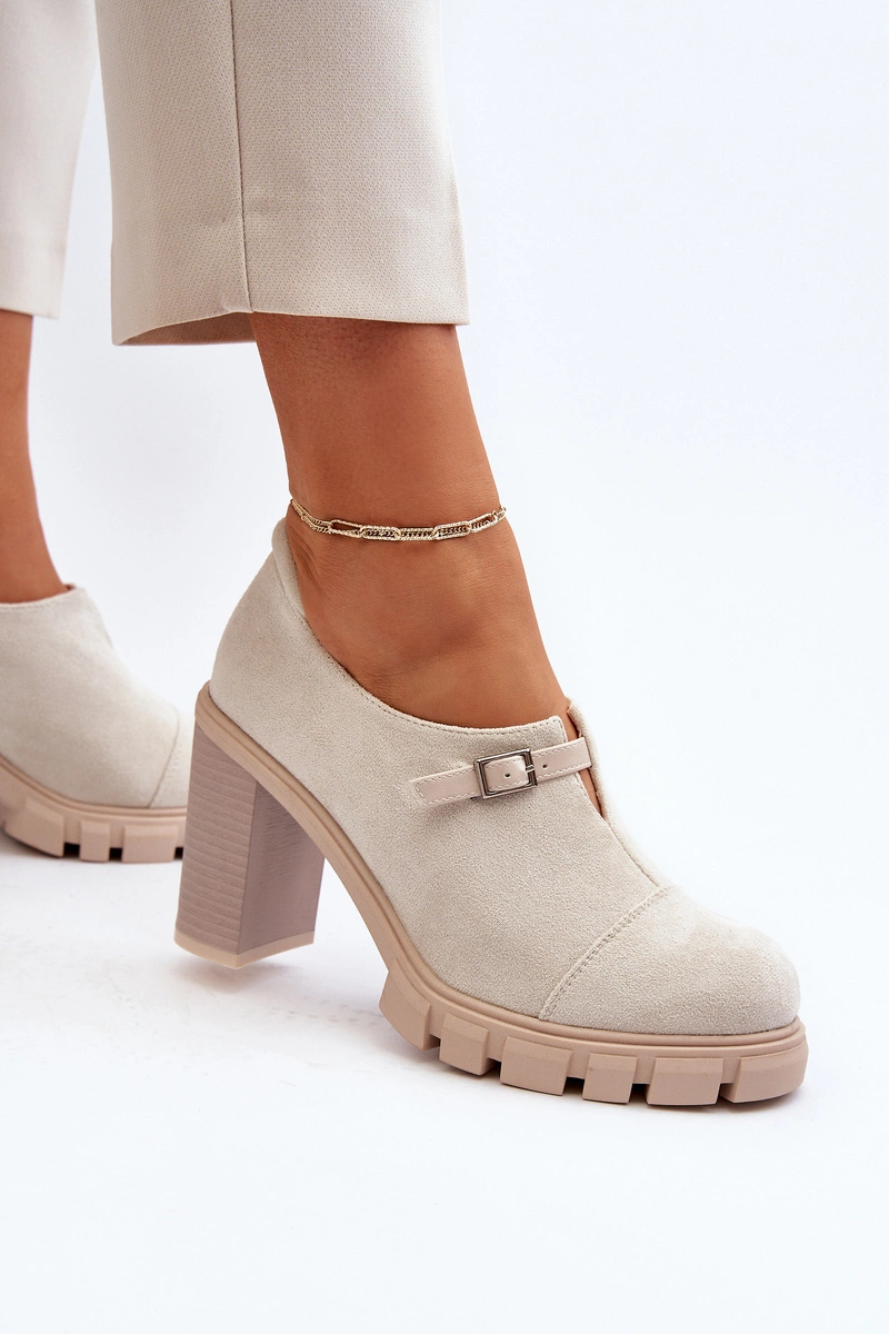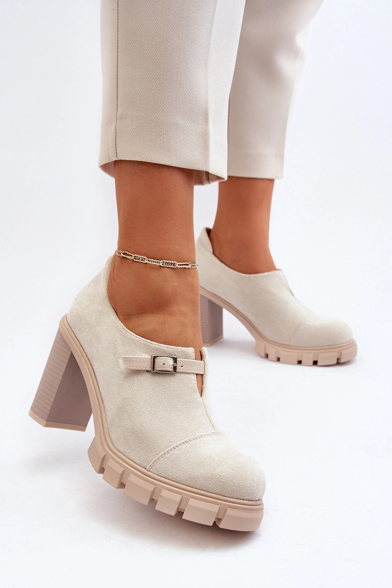Damskie Półbuty Na Obcasie Słupku Jasnobeżowe Tauina