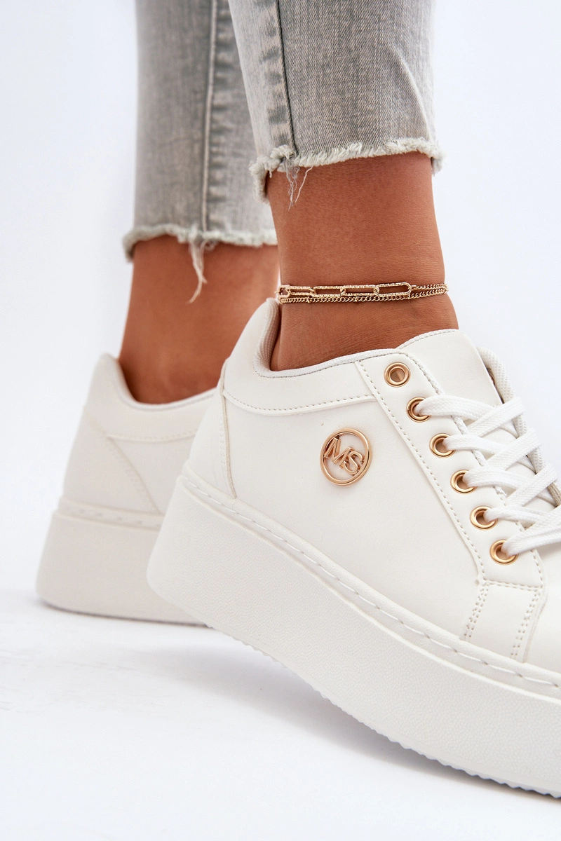 Niskie Sneakersy Damskie Na Platformie Białe Telirra