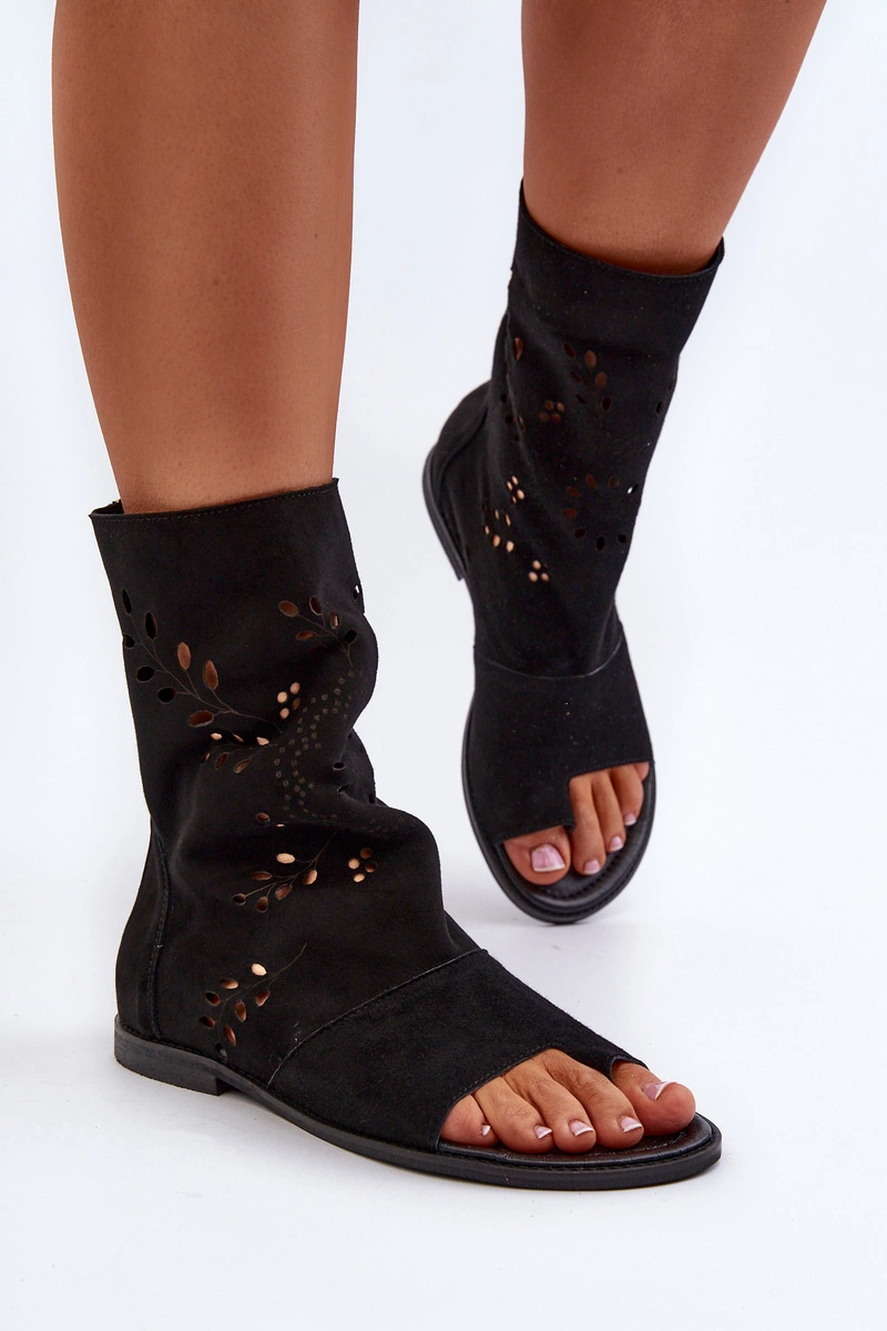 Zazoo 3437 Damskie Zamszowe Sandały Z Cholewką Na Zamek Czarne