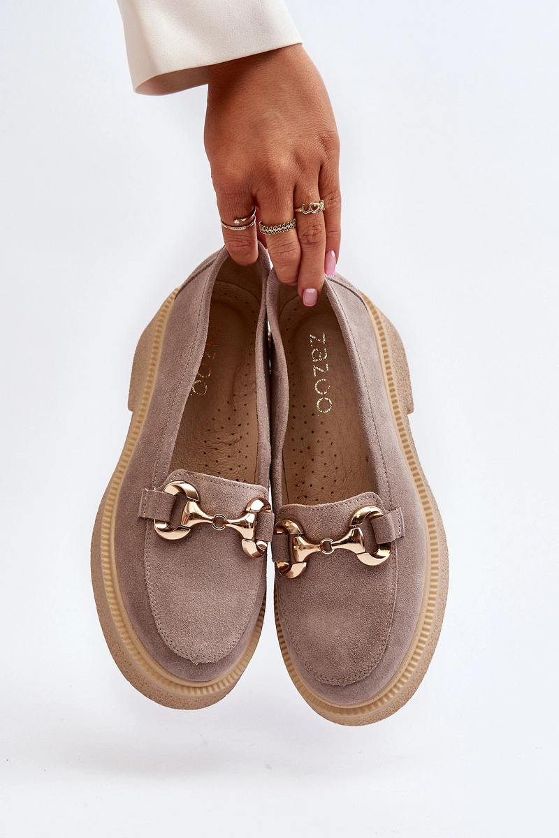 Zazoo 3429 Zamszowe Mokasyny Damskie Z Ozdobą Cappuccino