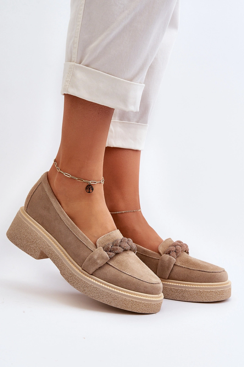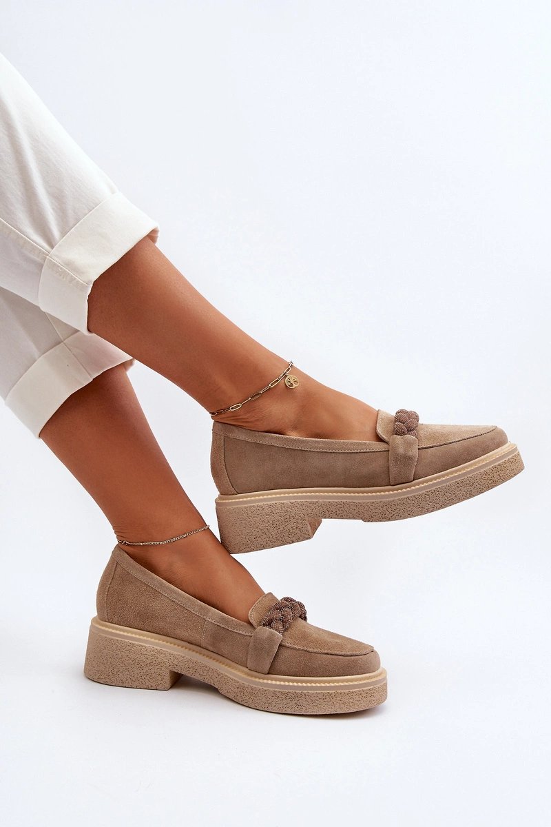 Zazoo 3429/W Damskie Zamszowe Mokasyny Z Ozdobą Beżowe