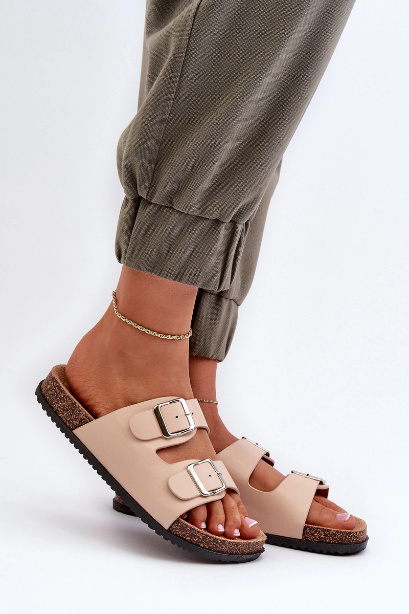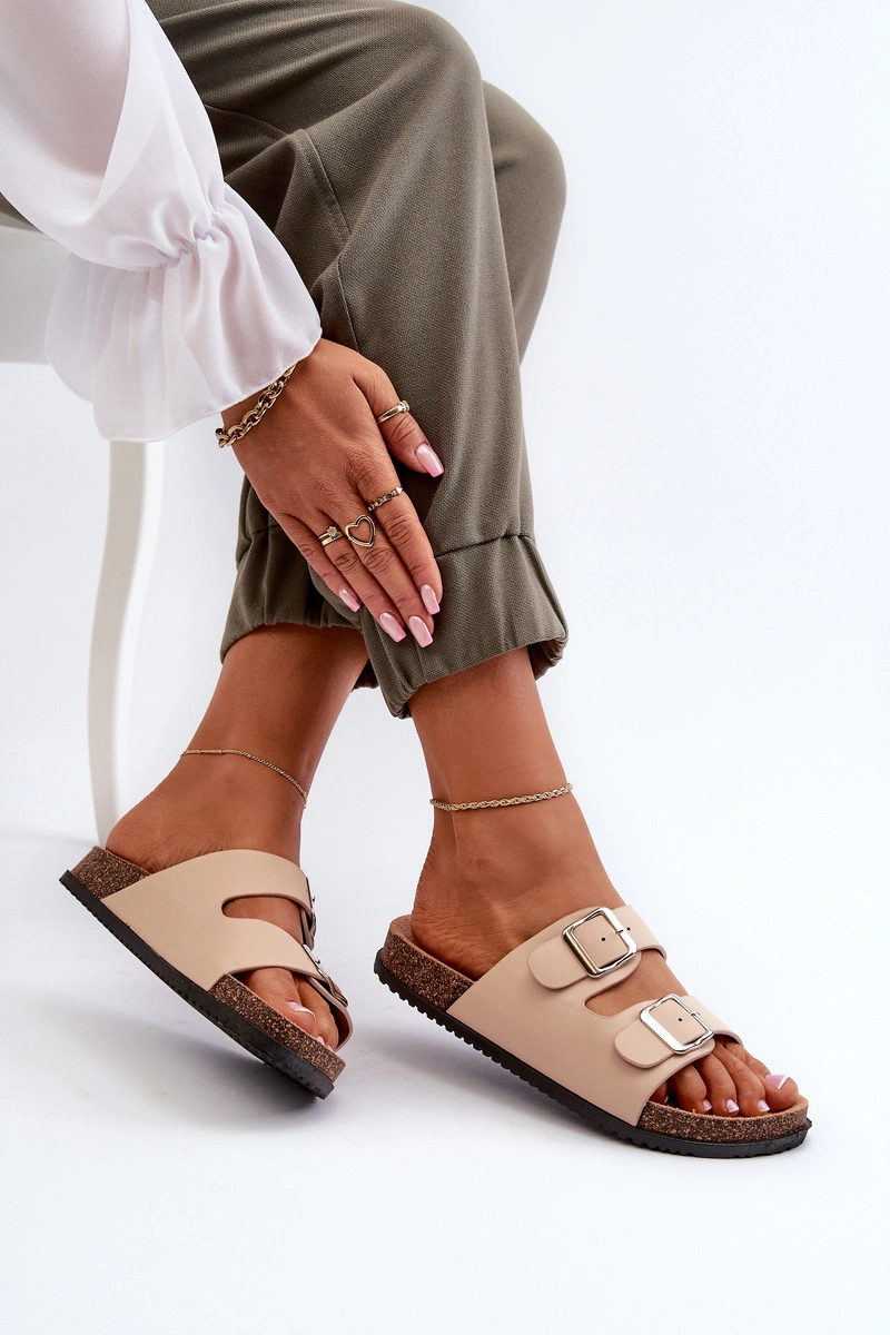 Klapki Damskie Z Klamrami Beżowe Oliena