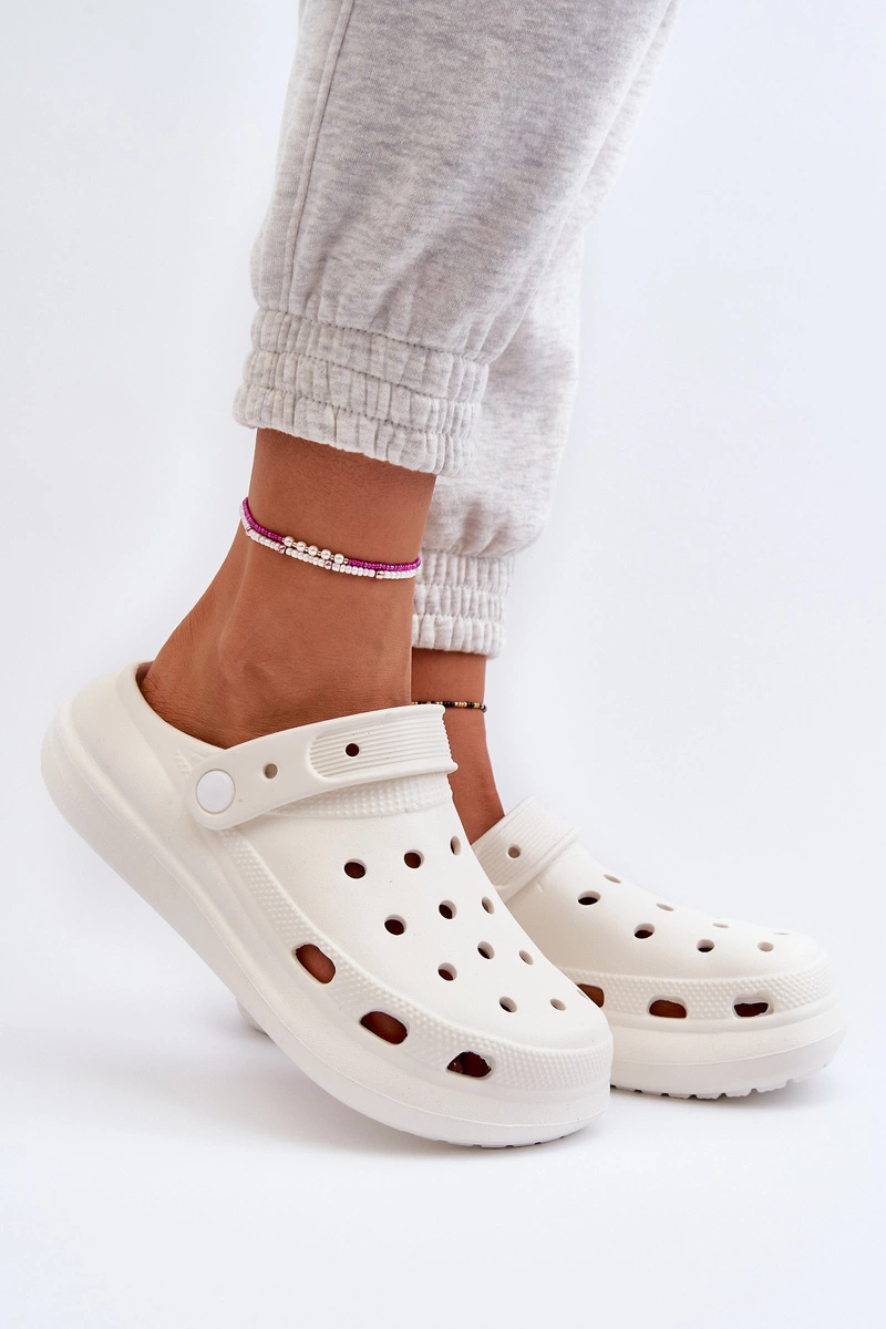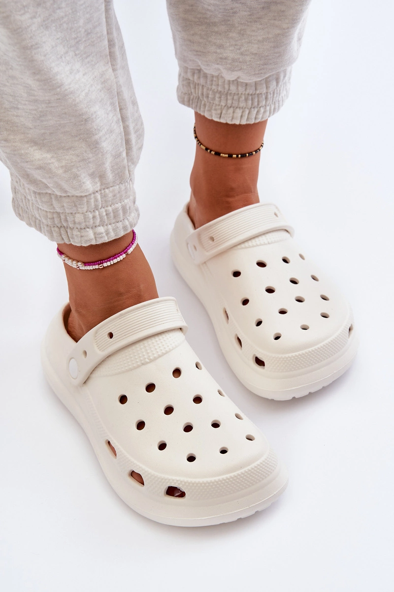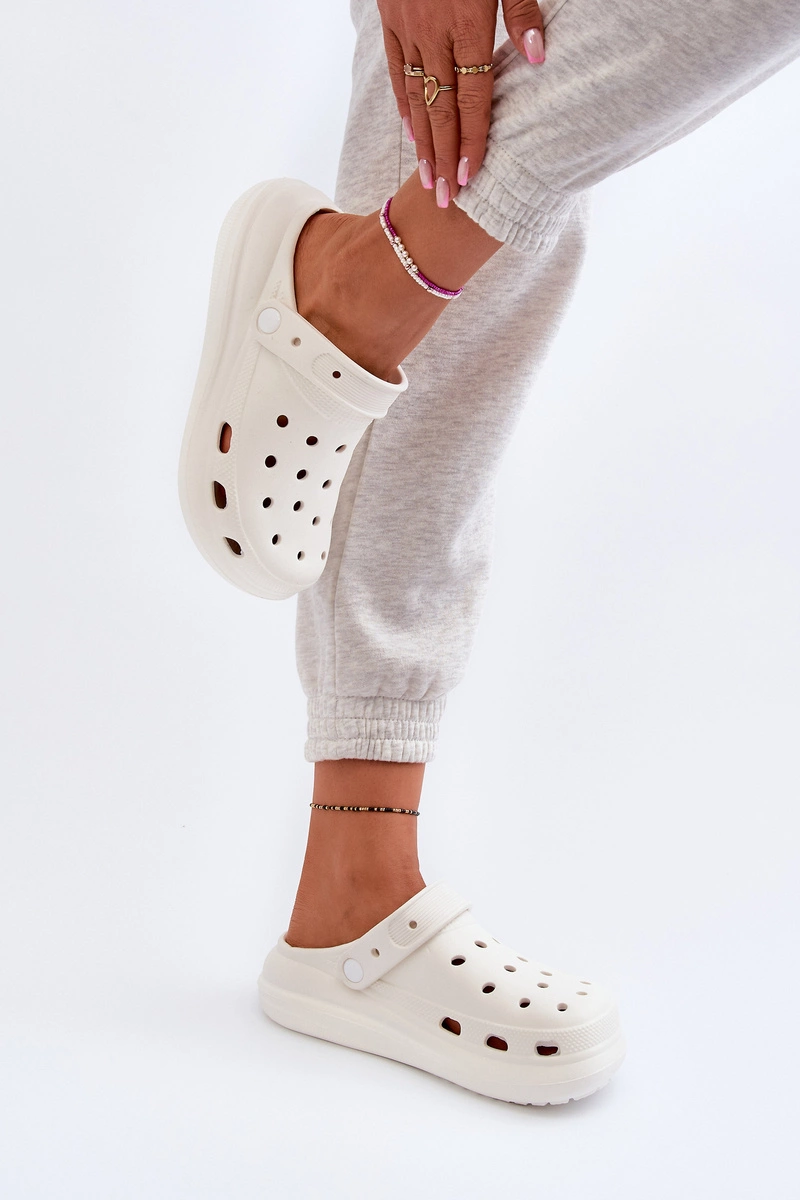 Klapki damskie wykonane z lekkiego, piankowego materiału. Ruchomy pasek zapewnia stabilność i chroni przed ślizganiem się stopy. Platforma zapewnia wygodę podczas noszenia. Dodatkowe otwory w cholewce pozwalają na odpowiedni przepływ powietrza, zapewniając komfort nawet podczas gorących dni. Przy wyborze rozmiaru prosimy sugerować się tabelą rozmiarów.