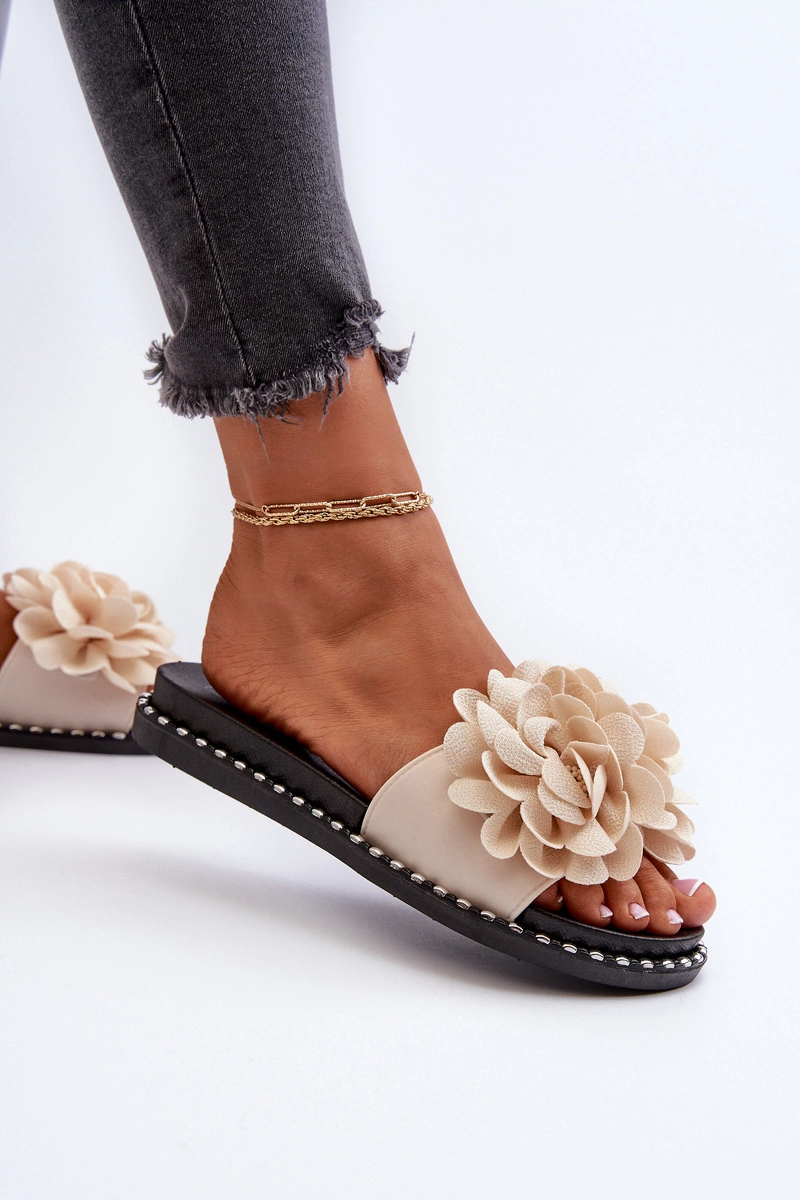 Klapki Damskie Ozdobione Kwiatami Beżowe Cellanen