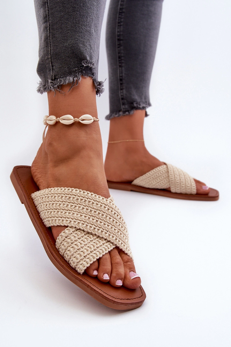 Klapki Damskie Płaskie Big Star NN274078 Beżowe