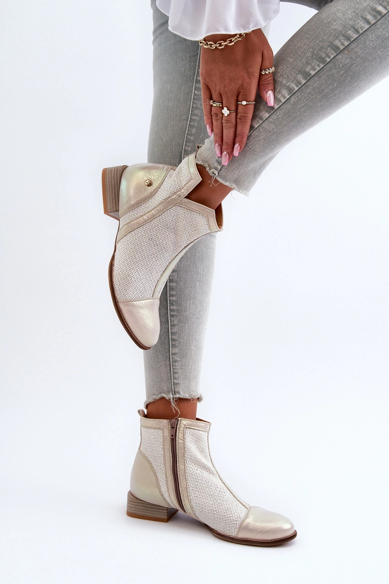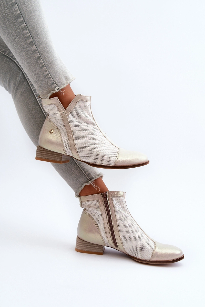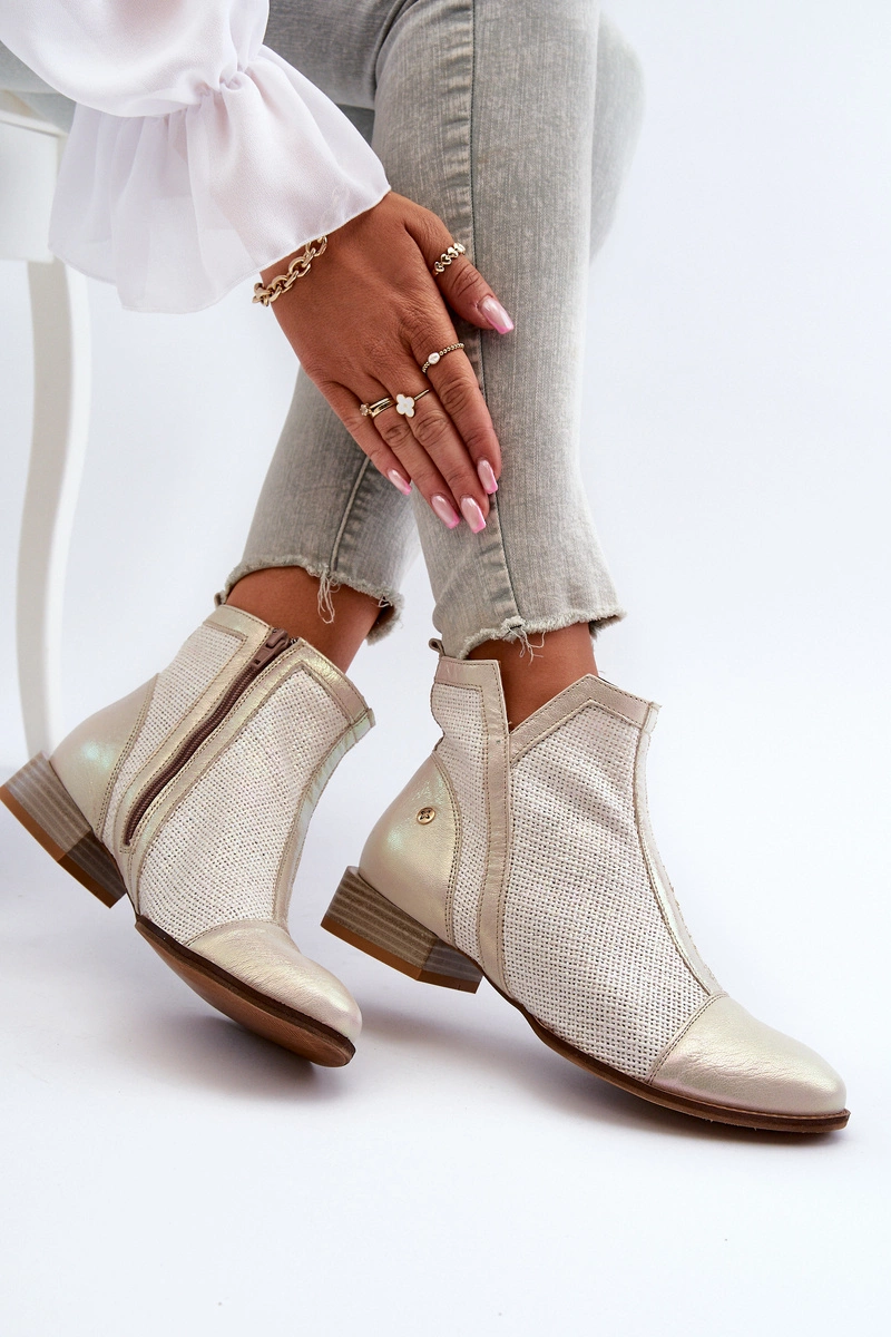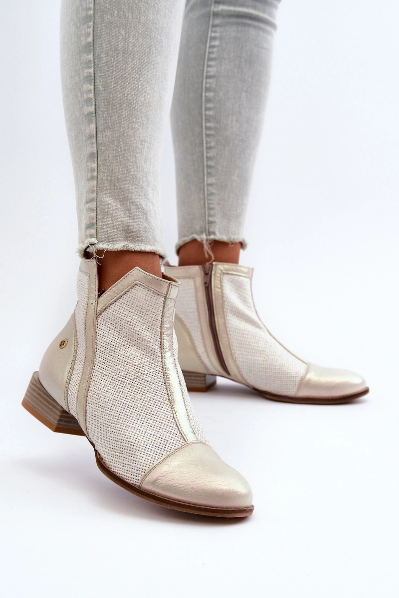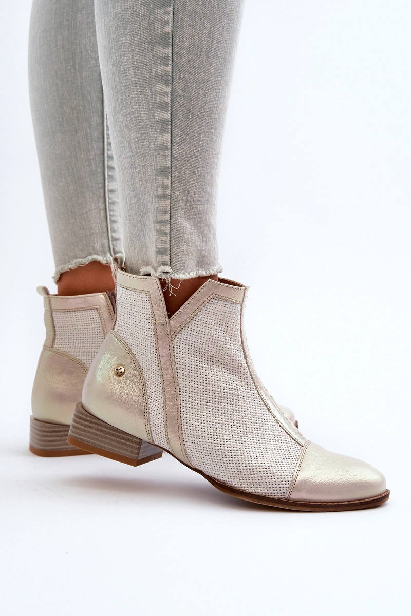 Skórzane Botki Damskie Na Niskim Obcasie Maciejka 06397-22 Jasnobeżowe