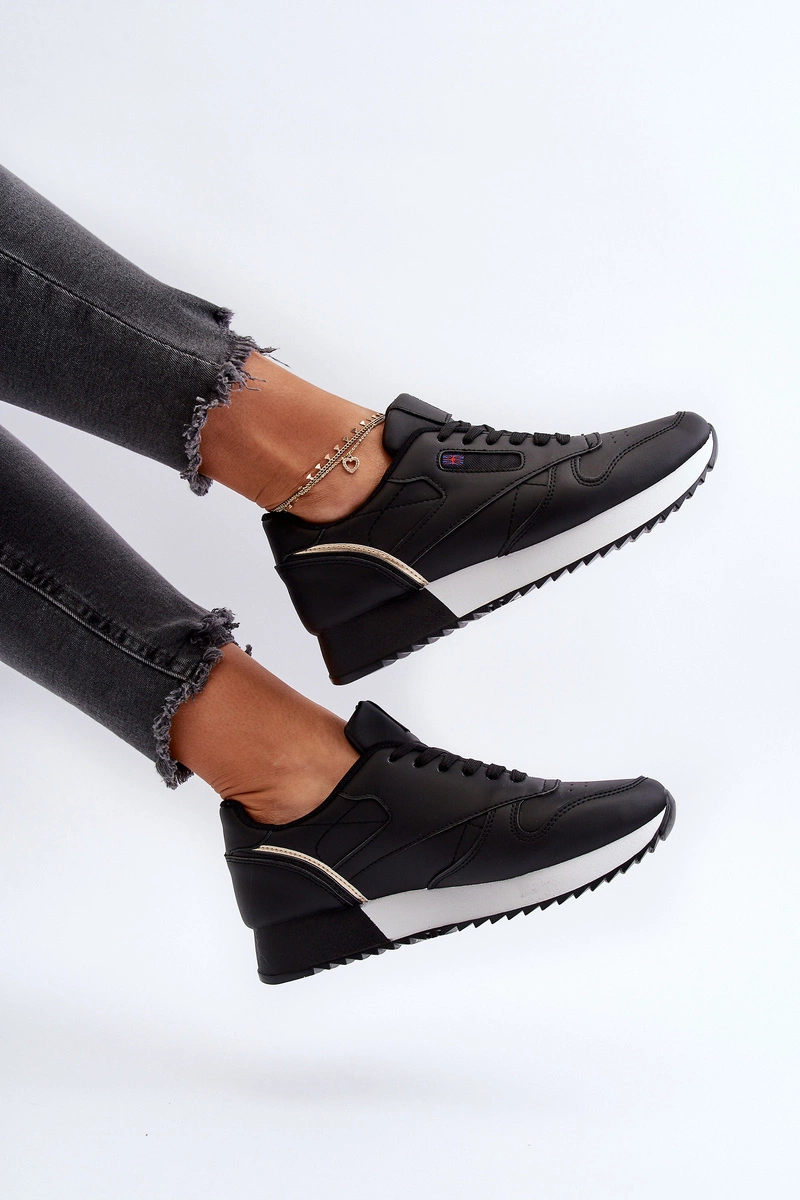 Skórzane Buty Sportowe Sznurowane Na Platformie Czarne Merida