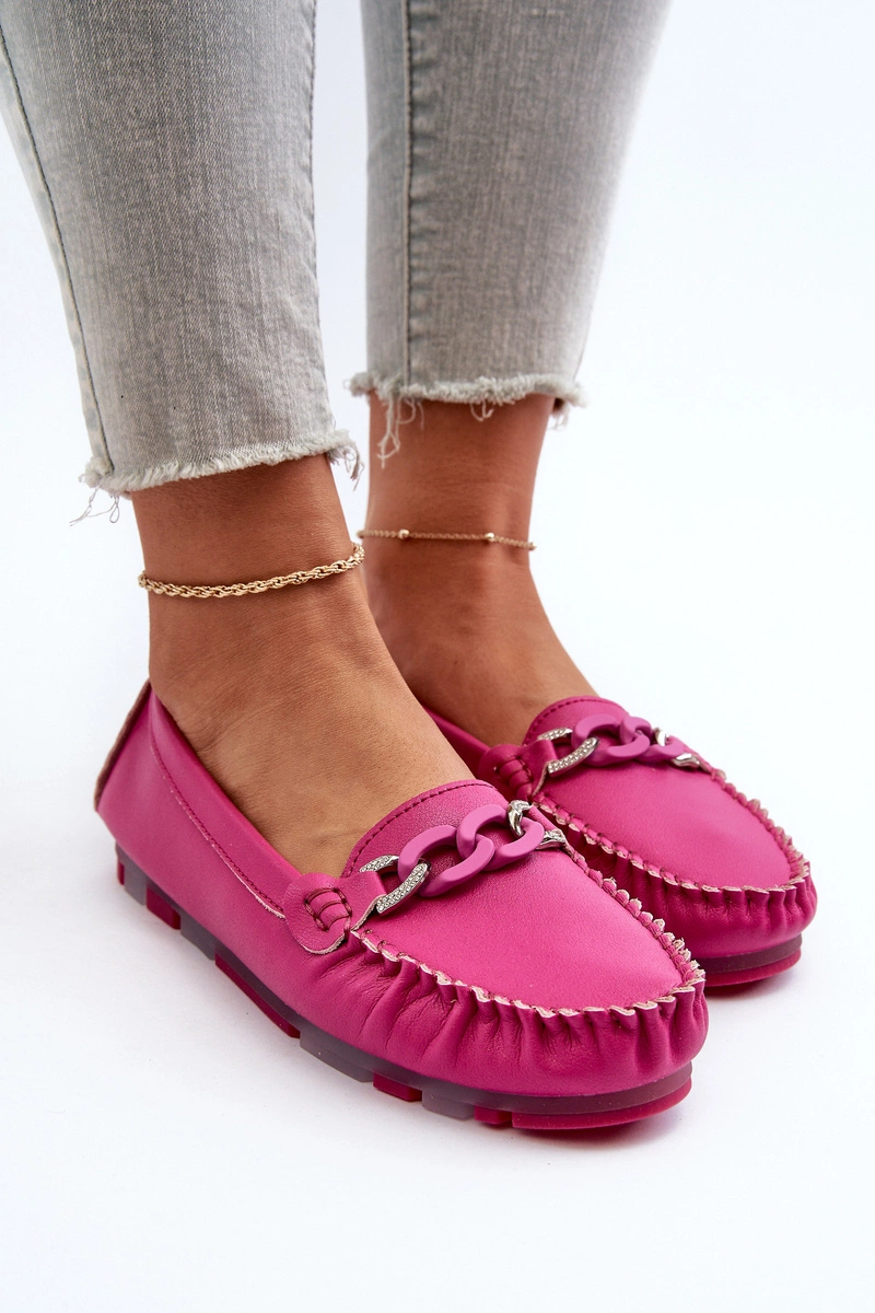 Skórzane Mokasyny Damskie Z Ozdobą Fuksja S.Barski LR339