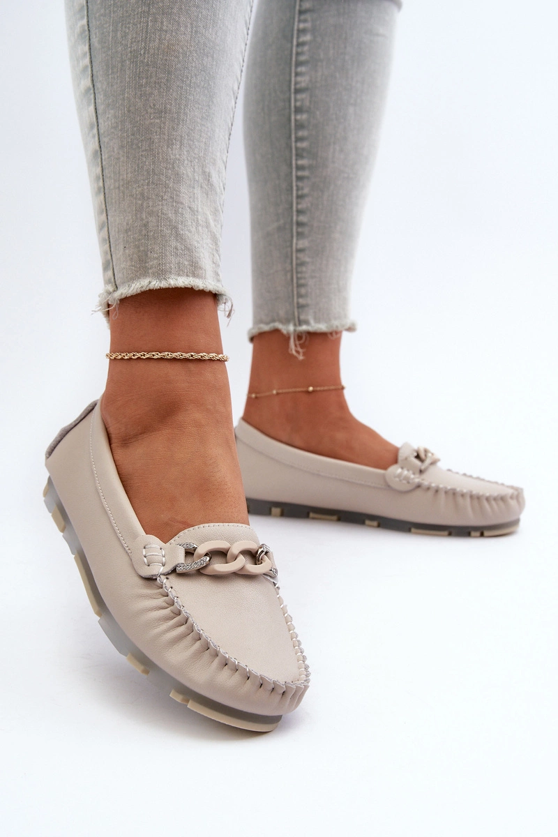 Skórzane Mokasyny Damskie Z Ozdobą Beżowe S.Barski LR339