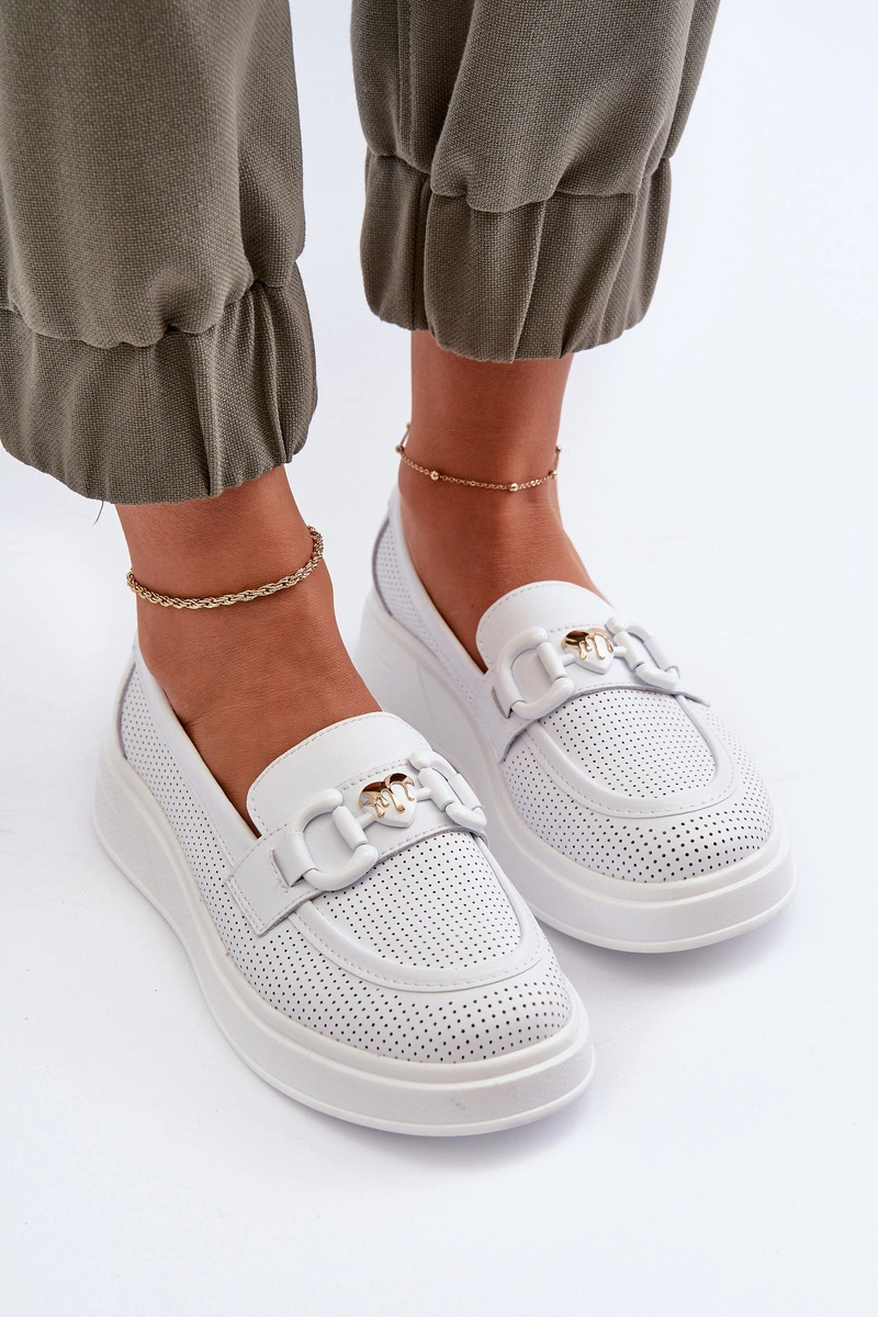 Mokasyny damskie marki S.Barski to połączenie klasyki z nowoczesnością. Wykonane z wysokiej jakości skóry naturalnej, zapewniają trwałość i komfort noszenia. Osadzone na platformie, która zapewnia stabilność podczas chodzenia. Ozdoba umieszczona z przodu nadaje im subtelnego uroku, sprawiając, że doskonale komponują się z różnymi stylizacjami. To idealny wybór dla kobiet, które cenią sobie nie tylko wygodę, ale także wyrafinowany styl. Przy wyborze rozmiaru prosimy sugerować się tabelą rozmiarów.