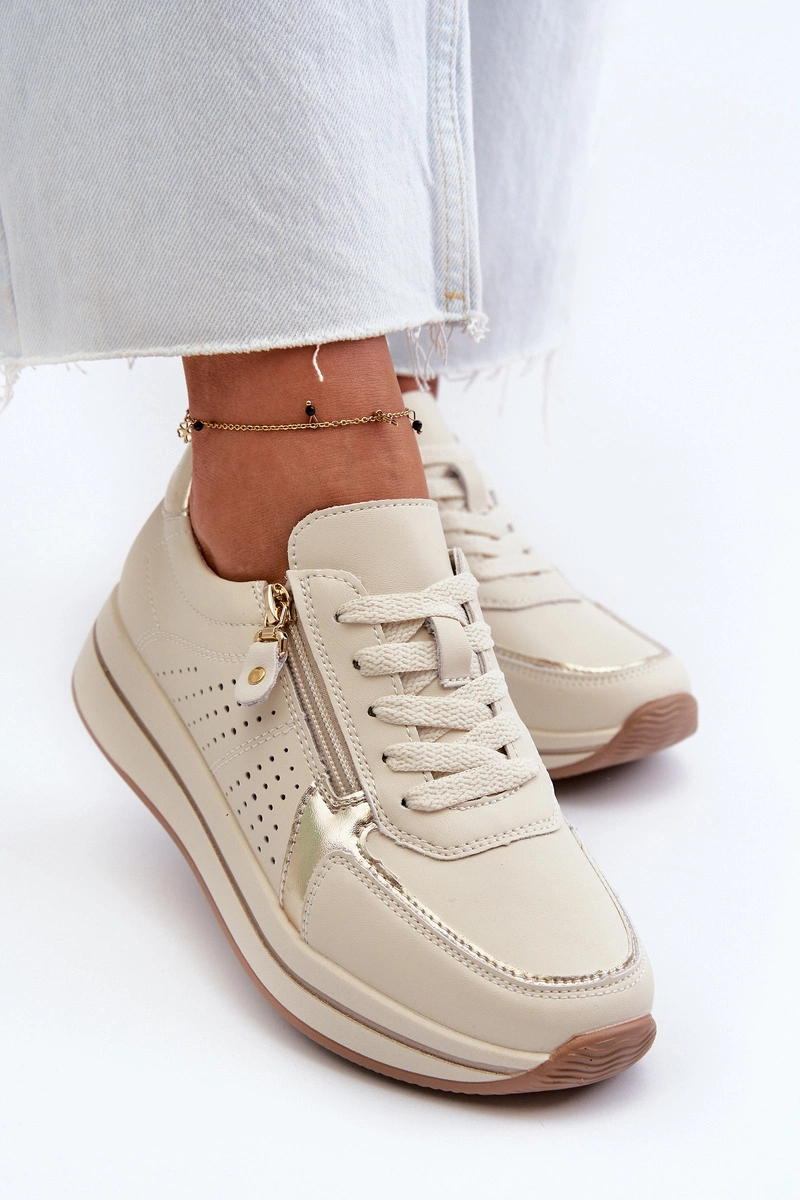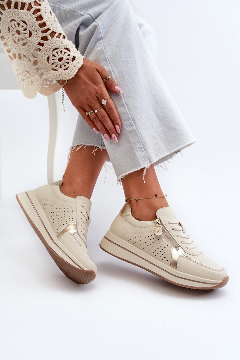 Damskie Skórzane Sneakersy Na Platformie Beżowe Ligustra