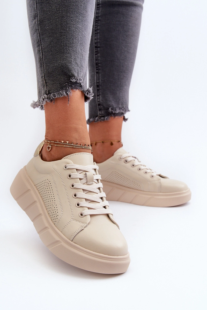 Damskie Skórzane Sneakersy Na Platformie Beżowe Gatira