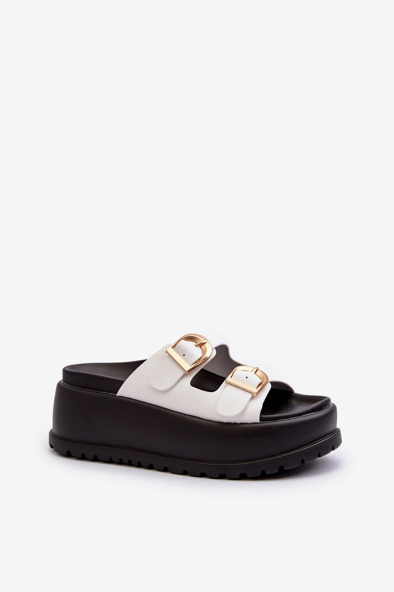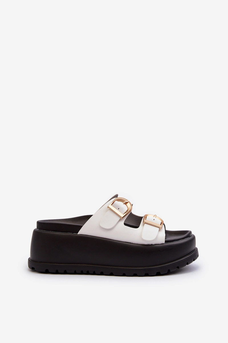 Damskie Klapki Na Masywnej Platformie Białe Mililena