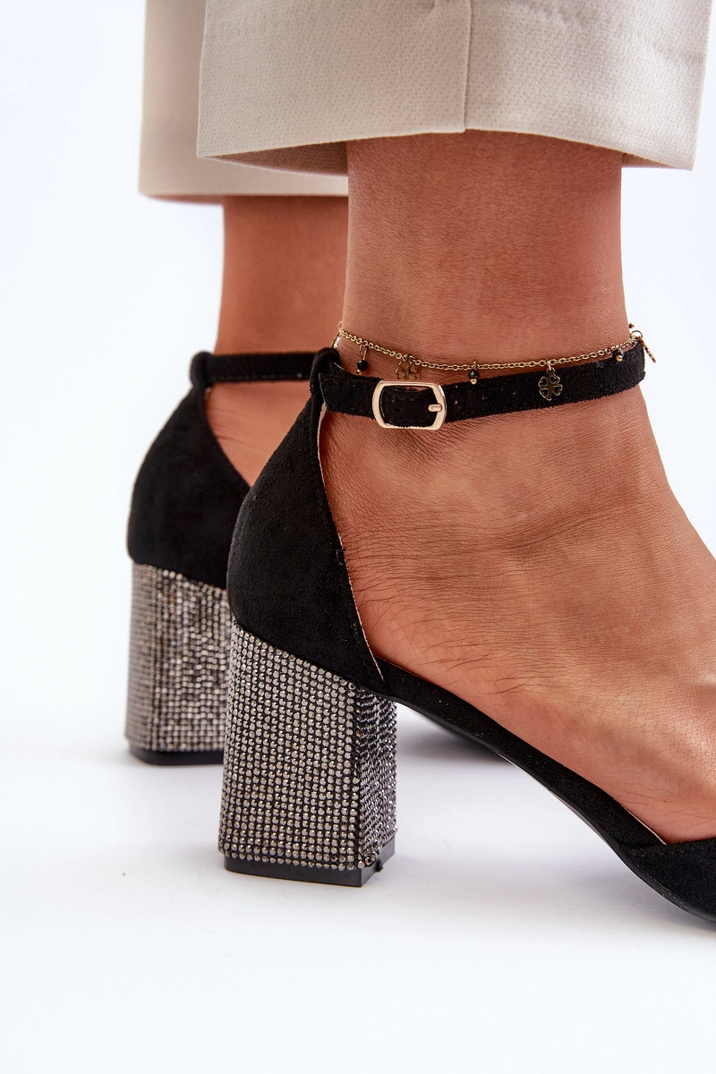 Czółenka z Eko Zamszu Na Zdobionym Słupku Czarne Anlitela