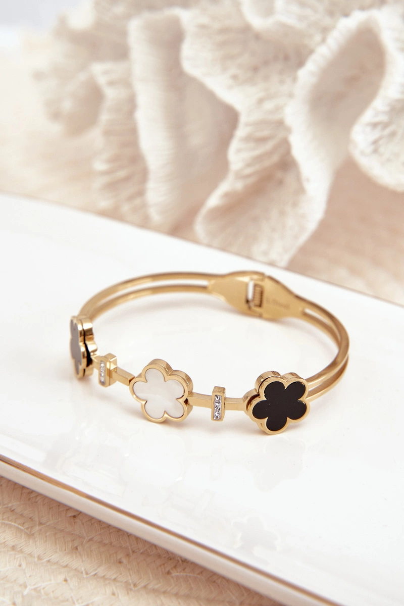 Bransoleta Damska Z Kwiatkami Stal Nierdzewna Złota