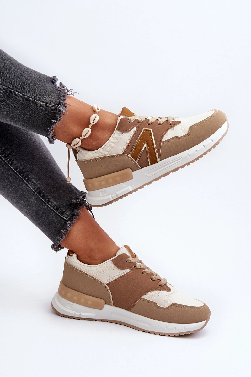 Sneakersy Damskie Z Eko Skóry Brązowe Vinelli